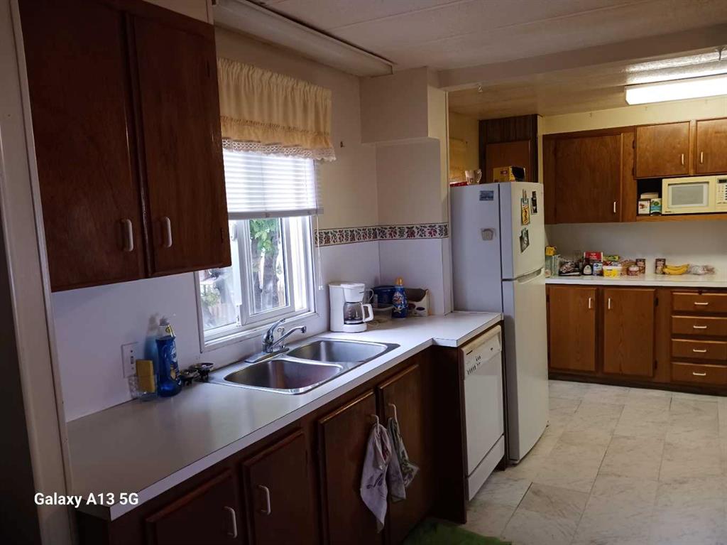 30 day possession possible on this Fleetwood home located in Wetswood Court mobile home park in Innisfail. Very different floor plan. from factory.This home is a 2 bedroom. Primary Bedroom has cheater door to main 4 pc bath and, bedroom #2 located at the very far opposite end has it's own 3 pc ensuite. Upgraded carpet in the living room, linoluem in the dining area, kitchen and , hall way. Fridge and washing machine up graded. Lots of vinyl windows, great addition for computer room or study, wood burning stove in addition{not used at this time}. Entrance to home has freshly painted 8'x8' deck, 11'6x 12'6 deck out the back entrance facing west and south. Nice to have a 19'4x 9'10 carport for your ride and a little extrax storage. More huge storage in the back yard with a 12'x8 shed, a 10'x8 shed and, a vey cool round shed not measursed. This is an ideal spot with ideal possibilities to start saving a few bucks and building some equity. Central mail box a short walk away, play ground in the middle of the park for your kids or grand kids. This not a new home but, a great home for starting out or down sizing too as part of your easy living retirement ideas.