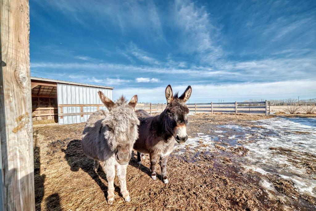 When you DREAM, do you dream of living a "City Close, Country Quiet" existence, on a 18 acre estate, boasting over 2100 sq ft (main level) and over 3650 total developed sq ft , just 1.5 miles from Calgary's border, with MASSIVE upside as Calgary grows over the next few decades? WELCOME home. The heart of the home, the kitchen, opens up to the great room creating a massive open space. The kitchen is a chef’s delight with massive granite countertops, gas oven, upgraded stainless steel appliances, timeless real wood shaker cabinets, with undercabinet lighting and a gargantuan central island. The adjacent great room hosts the cozy gas fireplace and ample sitting area. Both the kitchen and great room have amazing views of the south and west of the yard, and are bathed in sunshine. Down the hall, past the child bedroom and 4 pce bath, we find the master retreat, with it's decadent ensuite, and walk-in closet. Completing the main level is the rear laundry / mud room and is the main floor den / office, with it's own door for work-from-home types that need to have clients stop by. The walkout lower level boasts a MASSIVE room, the width of the house, 2 bedrooms, and another 4 pce bath, all heated with hydronic in-concrete-slab heat (n. gas boiler). Outside you have oodles of outbuildings, hundreds of trees, and a private oasis tucked into the trees to the north. Seldom to you feel so completely private this close to a major city. If you love horses, donkeys, llama, or chickens it's fully setup with large corral with shelter, tack and feed room, and 4 season livestock waterer. Adjacent is a fully insulated chicken coop with treed outdoor space for a happy flock. Fully fenced paddock for livestock, and mixed alfalfa / grass hayfield for cutting/grazing. Land is zoned R-RUR which gives lower taxation and provides for a wide range of potential options for development (accessory buildings, home based businesses, etc). A large part of the value is in the land, with 18.68 acres or over 813 000 sq ft; put another way, it would fit over 220 "average" new lots in Calgary. This much space is both a private oasis for you and your family, but also the long term redevelopment gain as HUNDREDS of families could eventually live here, post development. The mind boggles at the potential future returns. Although Calgary’s city limits are only 1.4 miles away, it's possible Airdrie could annex first. It is a city close, but country quiet. Call your agent today to book a showing.