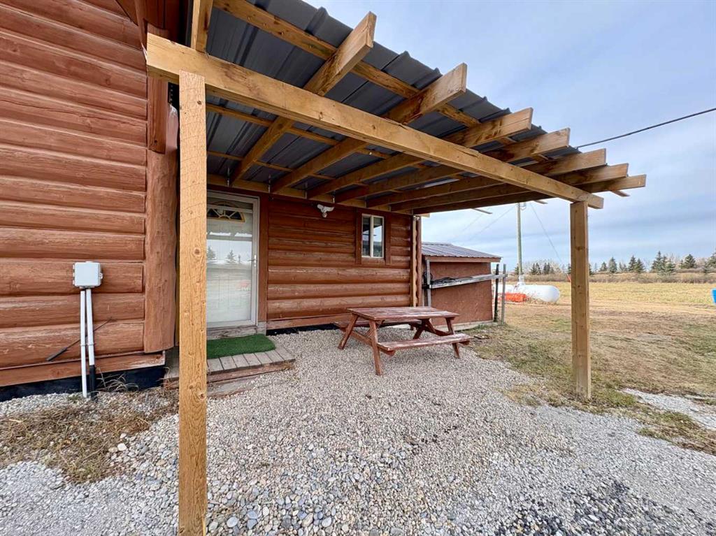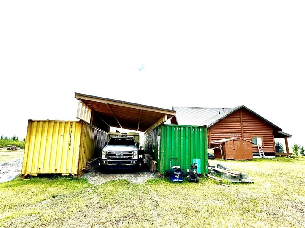Discover an exceptional opportunity at the corner of Symons Valley Road and Big Hill Springs Road — 53 acres of prime land featuring incredible highway frontage and panoramic views of the Rocky Mountains. This property includes 49.13 acres on the west side of Symons Valley Road and 4.16 acres on the east side, providing flexibility for future development or investment. The modern log home, built in 2005, offers an open-concept design with vaulted ceilings and expansive west-facing windows that perfectly frame the breathtaking mountain sunsets. Inside, you’ll find two bedrooms, two bathrooms, and a spacious loft, all complemented by in-floor heating replaced in 2024 for year-round comfort. A new hot water tank installed in 2023 ensures added reliability. Outside, two 40-foot sea containers with a two-car parking shed built between them provide secure storage and covered parking. Ideal for investors or developers, this property offers potential for a 4-acre parcel subdivision, RV storage, or future commercial re-zoning (subject to MD of Rocky View approval). Combining luxury, location, and limitless potential, this remarkable property is truly one-of-a-kind.