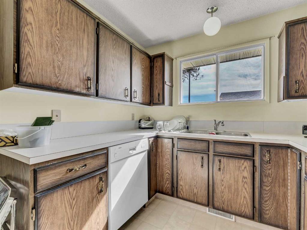 Welcome to this spacious and well-built 1,303 sq. ft. bungalow, perfectly located on a quiet street and backing directly onto a park and school—an ideal setting for families and anyone seeking both privacy and convenience. This home offers plenty of room for comfortable living and a great opportunity to make it your own. The main level features three generous bedrooms, including a primary suite with its own two-piece ensuite for added convenience. A full four-piece bathroom serves the rest of the household. The bright and functional kitchen offers plenty of cabinet and counter space, while the adjoining dining area is perfect for family meals and gatherings. The large living room provides a warm and welcoming space, ideal for entertaining or relaxing after a long day. Downstairs, the fully developed lower level expands your living space even further. You’ll find a spacious family/rec room—perfect for a home theatre, games area, or kids’ play space—as well as a bar area that’s great for hosting. There’s also a fourth bedroom, a three-piece bathroom, and a convenient laundry area, giving everyone the space they need. Outside, enjoy the private, fenced backyard—perfect for pets, gardening, or summer BBQs. The oversized double detached garage is heated, offering plenty of room for vehicles, hobbies, or a workshop. Backing onto a park and school means you’ll have no rear neighbors and easy access to green space and playgrounds. Recent updates include new shingles (2021) and a newer hot water tank, adding comfort and peace of mind. With solid construction, a functional layout, and loads of potential, this home is ready for your personal touch. A rare find offering great square footage, a fantastic location, and the chance to create something truly special.