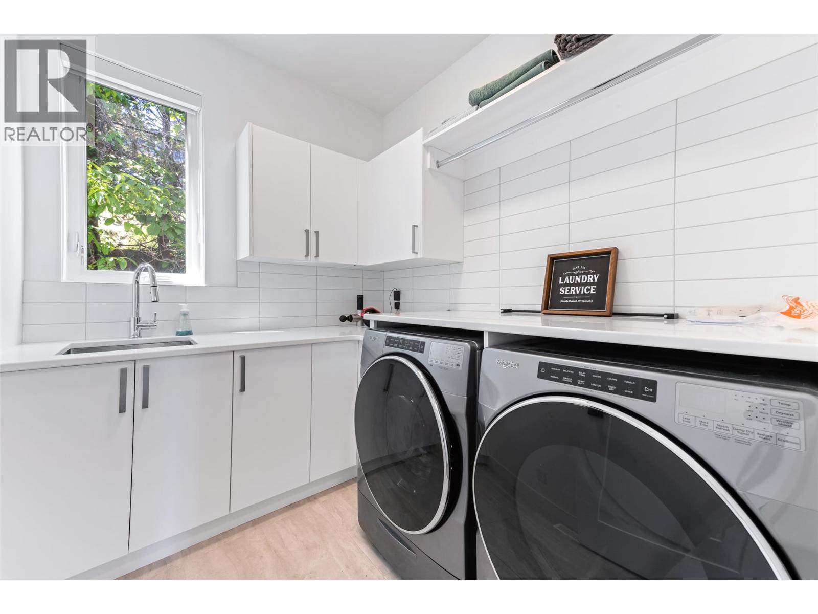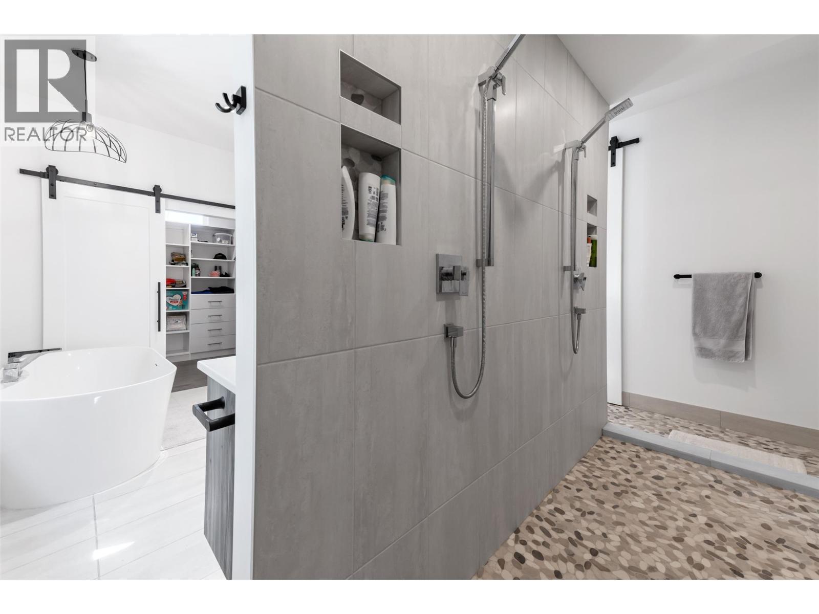 Modern Custom Home with fabulous Lake Views. This stunning 4 bedroom, 4 bathroom home with a legal one bedroom suite is ready for its new owners. This bright and spacious design, with 12 ft ceilings and floor to ceiling windows, allows lots of natural light and great views of Okanagan Lake and Kelowna. The Primary bedroom is complete with a spacious walk in closet, luxurious ensuite bathroom with freestanding tub, walk through dual shower and his and her sinks with ambience lighting to accentuate the vanities. The Kitchen includes granite counters, a coffee/mini bar and stainless steel appliances. The home also features a large roof top patio, a triple tandem garage, and ample parking for your recreational vehicles. Book your showing today.