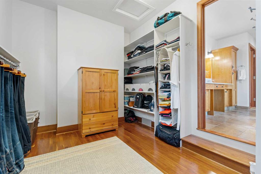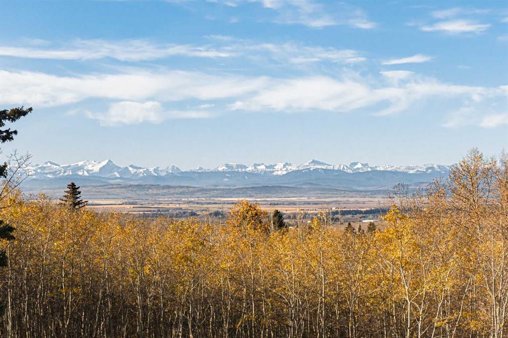 This exceptional, one-of-a-kind property offers the best of Springbank living — privacy, tranquillity, and breathtaking Rocky Mountain views. Set on a picturesque 2.17-acre lot in the heart of Pinnacle Ridge, this walkout bungalow sits high on the ridge, surrounded by beautifully landscaped grounds that provide seclusion from the street and neighbours. Tucked away from main roads, the property features its own private ravine, approximately one acre of mature trees and natural landscape, offering beauty and privacy while minimizing yard maintenance. A circular driveway flanked by mature trees sets the tone from the moment you arrive — this is truly something special. Inside, you’re greeted by stunning mountain vistas and an open layout. The beautifully renovated kitchen features a large island, granite countertops, and high-end appliances, including a Sub-Zero refrigerator, wine fridge, microwave, and 48” Wolf gas range. It opens to a bright dining space and sitting area with access to the large main deck (23' x 22'). The spacious living room, complete with a fireplace, perfectly frames the magnificent mountain backdrop. The main-floor primary suite offers a luxurious six-piece ensuite and a generous walk-in closet. The main level also includes a home office, two powder rooms, a walk-in pantry, and a mudroom that connects to an oversized four-car garage. The 54' x 26' garage (1,279 sq. ft.) is insulated, drywalled, painted, and finished with epoxy flooring, with half the space offering a 12’3” ceiling that is ideal for large trucks or lifts. The walkout lower level features a large recreation room, a wet bar that seats up to ten, a dedicated theatre room, three additional bedrooms, and two full baths. Cherry hardwood and tile flooring flow throughout the home, with wool carpet in the lower-level bedrooms for added comfort. The exterior showcases stucco and stone, complemented by a newer asphalt shingle roof (2020, 50-year warranty). An enclosed under-deck storage room is ideal for garden tools or a ride-on mower. This immaculate property has been meticulously maintained by its current owners, with recent mechanical upgrades including two new furnaces with humidifiers (2019) and two new air-conditioning units (2024). A truly remarkable estate combining privacy, panoramic views, and refined living in one of Springbank’s most sought-after locations.