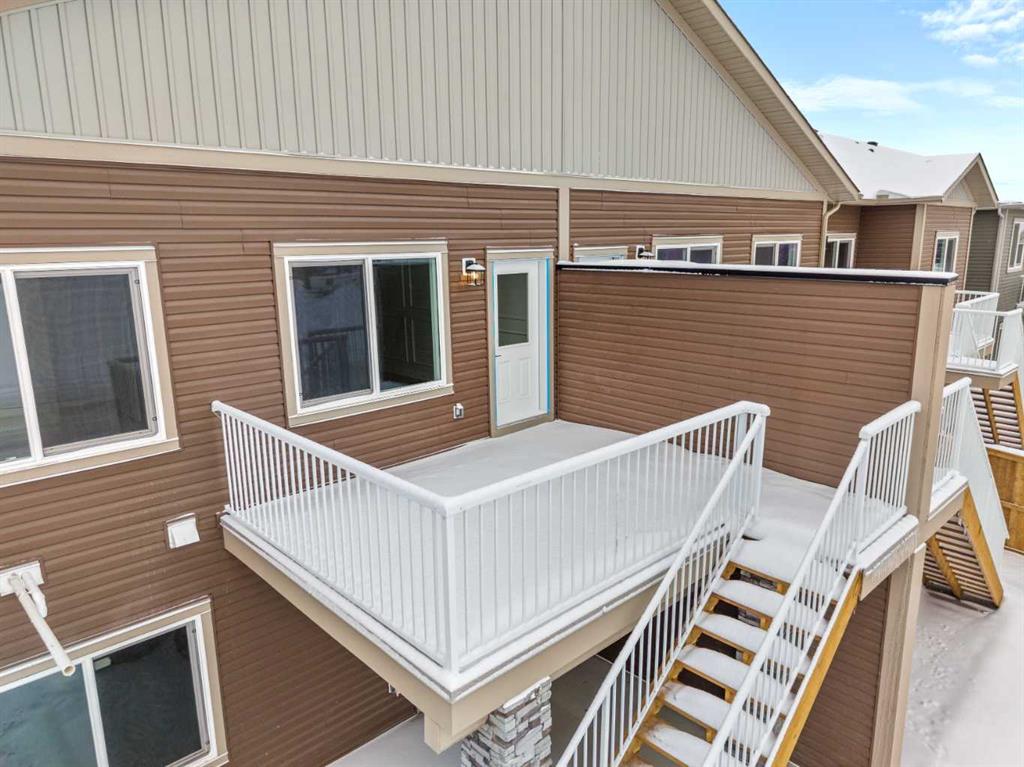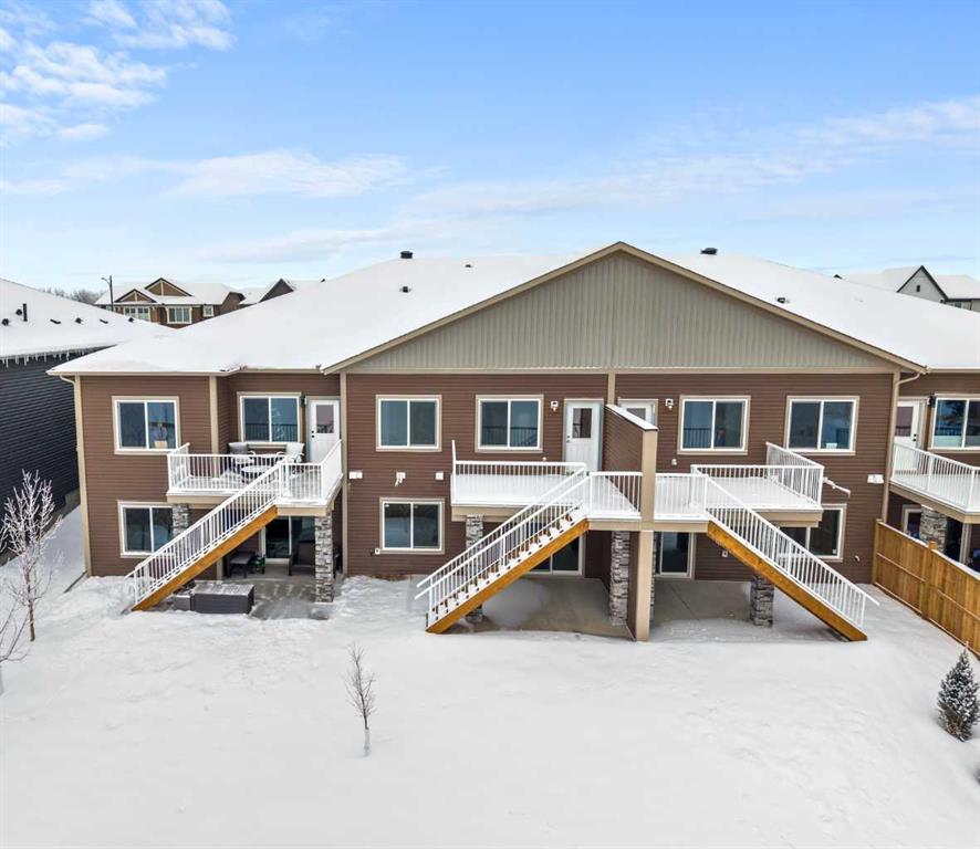 Welcome to The Stato by Luxe by Luxuria Homes, a beautifully designed bungalow-style townhome with no condo fees that blends luxury, functionality, and timeless appeal in the sought-after community of Wedderburn, Okotoks. Step inside and experience the feeling of space created by 10-foot ceilings and a bright, open-concept layout. Elegant wall wainscoting adds a touch of sophistication throughout the main living areas and primary bedroom, while upgraded lighting enhances every room with a warm, inviting ambiance. The gourmet kitchen features built-in appliances, quartz countertops, and a gas cooktop, opening onto a spacious dining area that’s perfect for gatherings. The great room centers around a beautiful tiled fireplace with a mantle, adding warmth and character for both everyday living and entertaining. The primary suite offers a true retreat with a walk-in closet featuring built-in shelving and a spa-inspired ensuite complete with a tiled shower and double vanities. A built-in bench in the mudroom adds practical style and convenience, while a versatile front den provides space for a home office or reading nook. The walkout basement is framed for future development, giving you the flexibility to finish it when the time is right. Enjoy outdoor living with a large rear deck with stairs, plus a covered concrete patio below for quiet relaxation. The double attached garage provides everyday ease, and the no-condo-fee lifestyle means more freedom and flexibility. Located in North Okotoks, Wedderburn offers scenic walking paths, green spaces, and quick access to local shops, dining, and essential amenities, all just 15 minutes from South Calgary. 27 Wolf Crescent is more than a home. It’s a refined, low-maintenance lifestyle designed for comfort and connection.