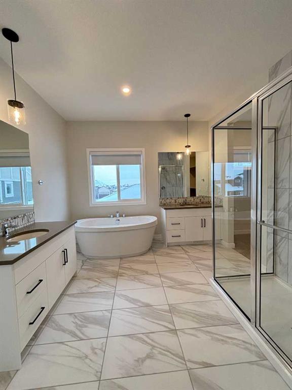 Welcome to refined estate living in the heart of Bayside Estate, Airdrie, where thoughtful design meets everyday luxury in this Custom Estate spec home by McKee Homes—a home that truly checks every box and then some. Set on a generous 43-foot-wide lot, this stunning residence immediately impresses with its open-concept layout and 9-foot ceilings on all three levels, creating an airy, light-filled atmosphere that feels both grand and inviting. Whether you’re hosting large gatherings or enjoying quiet family moments, the flow of this home is designed to elevate your lifestyle. At the heart of the home is a chef-inspired main kitchen, complete with premium finishes, abundant cabinetry, and plenty of prep space—perfect for entertaining or unleashing your inner culinary creativity. For added convenience and flair, a separate spice kitchen keeps aromas contained while allowing you to cook to your heart’s content. This is a dream setup for food lovers and entertainers alike. The main floor is thoughtfully designed with versatility in mind, featuring a private office ideal for working from home, and a large main floor bedroom with its own ensuite—perfect for guests, multigenerational living, or a luxurious private retreat. Upstairs, you’ll find three generously sized bedrooms, offering comfort and privacy for everyone. The spacious bonus room serves as the perfect hub for movie nights, a kids’ play area, or a relaxing lounge—your imagination sets the limit. An oversized rear-attached double garage provides ample space for vehicles, storage, and all your toys, while maintaining a clean and elegant streetscape. Built with high-efficiency construction standards, this McKee Homes estate property delivers modern performance alongside timeless style—helping you stay comfortable year-round while keeping energy costs in check. From its impressive ceiling heights and thoughtful layout to its luxurious kitchens and flexible living spaces, this Custom Estate home in Bayside Estate is more than just a place to live—it’s a place to thrive, entertain, and create lasting memories. Book your private tour today!