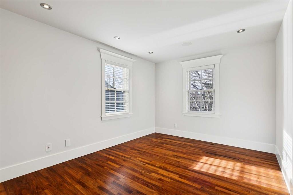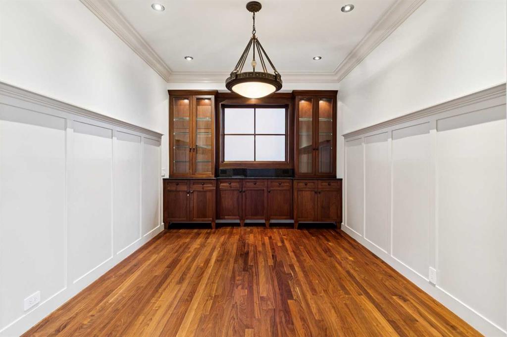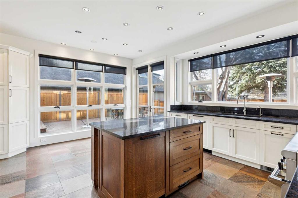 Situated in the highly desirable community of Mount Royal, this fantastic four-bedroom family home offers an exceptional lifestyle with walkability to all levels of schooling, including Earl Grey Elementary + Western Canada High School + an easy stroll to the Glencoe Club. The classic brick + stucco exterior is complemented by a large double attached garage + additional laneway parking beyond the backyard. The main floor is highlighted by a dynamic, expansive living room with dramatic beamed ceilings + a wood-burning fireplace framed by floor-to-ceiling stone. Flooring throughout the home is carpet-free, primarily showcasing hardwood + the interior has been freshly painted. A main-floor office features a built-in desk + an integrated storage system, while the designated formal dining room includes a built-in china cabinet for timeless entertaining. The legacy kitchen offers generous counter space + abundant cabinetry, complete with an island + a very spacious informal dining area with windows overlooking the expansive deck. Patio doors lead to a spectacular, flat, treed + landscaped west-facing backyard, creating an ideal setting for both everyday living + entertaining. The outdoor spaces truly shine with a huge deck equipped with a hot tub, making this an excellent home for indoor + outdoor living. Upstairs, you’ll find four very spacious bedrooms, a convenient laundry room + renovated bathrooms. The primary bedroom offers a 5 piece ensuite bath + dressing room complete with built in dressers. Two mudrooms enhance functionality for busy family life, with one located on the main floor + a second conveniently positioned off the attached under-drive garage with snowmelt. The lower level offers a huge family room/games area with built-in bookshelves + recently refinished hardwood flooring. This very bright, Air conditioned family home is available for quick occupancy.