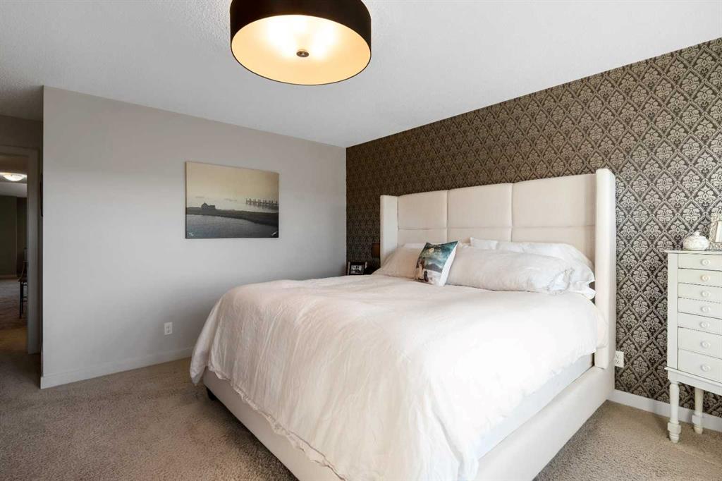 "OPEN HOUSE NOVEMBER 8TH 12-2PM & NOVEMBER 9TH 1-4PM" THIS HOME IS THE DEFINITION OF MOVE-IN READY WITH AN ELEVATED FINISH DESIGNED FOR THE MODERN FAMILY & STYLE SAVVY ENTERTAINERS! Welcome home to 2828 sq ft of developed living space, 4 beds, 3.5 baths of meticulously maintained perfection in beautiful Evanston. Step inside the spacious entry to find gleaming hardwood floors leading into a magnificent open-concept main floor. The massive chef’s kitchen is a culinary dream brilliantly illuminated & features stainless steel appliances, a garburator, and a huge pantry with a convenient bar fridge and hidden appliance counter. Eating bar allows for great conversation with your host, the elegant stools stay with the home. The kitchen flows seamlessly into the gorgeous dining room highlighted by a stunning coffered ceiling & anchored by a trendy two-way fireplace that casts a beautiful warm glow, perfect for adding intimate ambiance to your meal or fueling conversation in the adjacent cozy living space. Oversized windows bathe the entire space in natural light during the day. Upstairs, escape to your private retreat. The stunning primary bedroom offers views and features a spa-like 5-piece ensuite with a deep soaker tub and separate shower—your ultimate hideaway from a hectic day. The upper level also features two generous secondary bedrooms, a 4pc shared bath, a convenient dedicated laundry room (washer/dryer included) and a large versatile bonus room ready for your family's needs. The professionally finished lower level (with all permits) boasts a massive rec room or a media room, a 4th bedroom & 4pc bath, ideal for guests or teens. Enjoy peace of mind knowing this home features some major recent updates. New roof & eavestroughs (2024), updated A/C Unit (2023) and a water softener. Wait! Also enjoy year-round curb appeal and simplified holidays with newly installed permanent exterior LED lights! The fully fenced, west-facing backyard is beautifully landscaped and ready for outdoor living. Gather friends and family on your spacious deck for sunny BBQs and late-day downtime. This immaculate & superbly maintained home simply must be seen! Call your favorite realtor and enjoy a private tour.