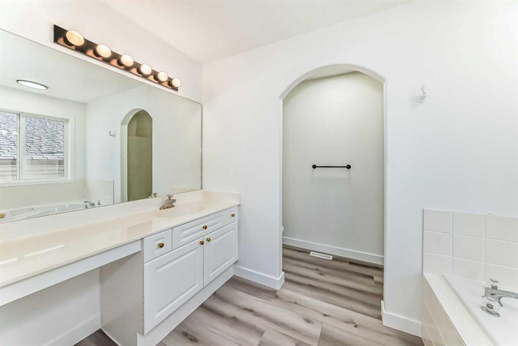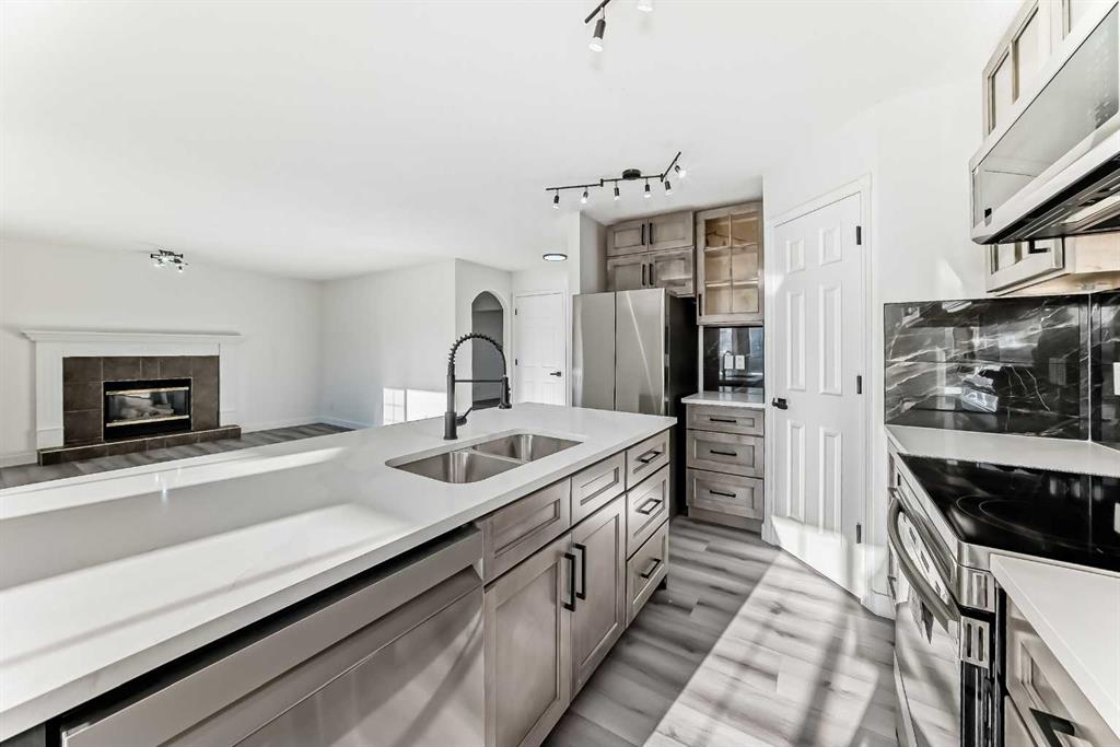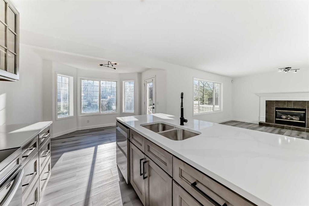 Pride of ownership exudes from this former Crestview Show Home located in the highly sought after community of the "Canals". Extensive renovations have just been completed including new flooring and fresh paint through-out. The kitchen has undergone a full remodel featuring new S/S appliances, cabinets, hardware plus a large center island with quartz counter-tops and tiled backsplashes. Off the kitchen is a good sized breakfast nook that grants access to a large East facing back deck that overlooks a park. Completing the main floor is a huge family room with a cozy gas fireplace plus a formal dining area, front living room, office, 2pc bath and laundry area. Upstairs you will find a massive primary bedroom with a walk-in closet, 4 pc ensuite (jetted soaker tub and separate shower) plus access to a West facing balcony. Completing the upper level are 3 additional bedrooms and another 4pc bath. The basement offers high ceilings, large windows and awaits your finishing touches. Additional bonuses include: new baseboards, toilets, LED fixtures, hot water tank plus the furnace has been recently serviced and the ducts cleaned. The double attached garage comes with a gas heater, freshly painted floors plus a front driveway great for additional parking. This home backs onto a park with no neighbors behind and is located close to schools, shopping, walking paths and easy access to main roadways.