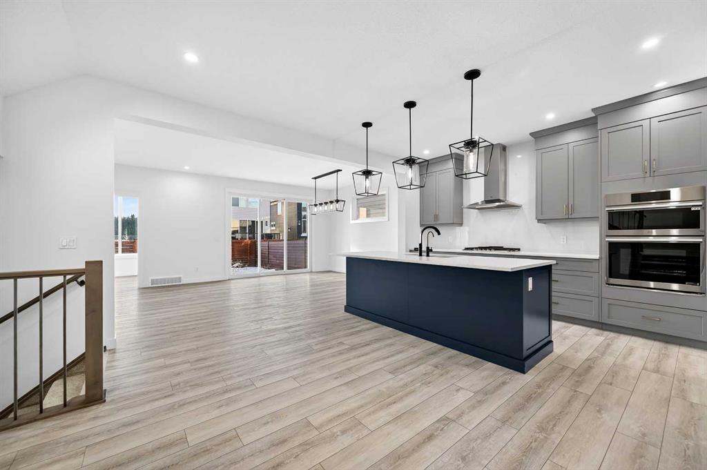 Welcome to 29 Rowmont Common NW, a stunning, sun-drenched residence that perfectly balances modern luxury with thoughtful family functionality. This south-facing home boasts a striking contemporary exterior with stone accents and a double attached garage. The bright, open-concept main floor features soaring ceilings, wide-plank flooring, and premium finishes throughout. The chef-inspired kitchen is a true showstopper, centered around a massive quartz island with a black undermount sink and designer pendant lighting. It comes fully equipped with a 5-burner LG gas cooktop, sleek chimney-style hood fan, integrated smart microwave and oven, and a full walk-through pantry. A dedicated breakfast nook with additional cabinetry and counter space is conveniently located directly beside the smart refrigerator. For the remote professional, a private main-floor office is situated near the entrance, flanked by a front-door closet and a functional half-bath. The living area is anchored by a sleek Gas Metal Fireplace, and the main level provides ample storage with direct mudroom-style access to the garage. Ascend the carpeted stairs with open railing to a versatile central bonus room, perfect for family movie nights. The Primary Suite serves as a sanctuary, featuring a private 4-piece ensuite with dual sinks and a spacious walk-in closet. Uniquely, the second bedroom also features its own 4-piece ensuite and walk-in closet, making it an ideal "junior suite," while a third generous bedroom sits nearby. The dedicated laundry room is a dream, complete with a washer/dryer, folding table, and built-in storage. The professionally finished basement extends your living space even further with two additional bedrooms, a large entertainment area, and a modern 3-piece bath. The utility room is meticulously maintained, featuring a Reverse Osmosis water system, high-efficiency furnace, and electrical panel. Outside, the south-facing backyard is a blank canvas, offering maximum sunlight throughout the day, perfect for a future custom deck. With titled-to-the-ceiling finishes and large windows throughout, this home is flooded with natural light and ready for you to move in