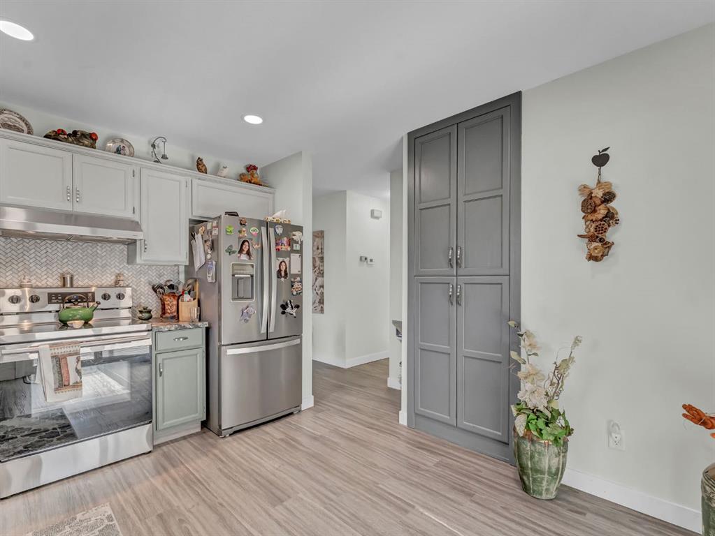 Location location!! Come see this lovely garden home in the sought after 50+ HORIZON VILLAGE COMMUNITY, that backs on to a beautifully treed green space and is PET FRIENDLY (some restrictions do apply) This 2+1 bedroom, 2 bath home is close to walking paths and shopping and also comes with a community clubhouse that has beautiful coulee views! The main floor is host to new vinyl plank flooring in the front entry,kitchen, living room,dining room and hallway. The kitchen has a pantry with pullouts, new sink and tap,freshly painted cabinets and new counter tops! Leading off the new patio doors is the south facing yard with maintenance free covered deck and a gasline to the BBQ! Sit back and relax and watch the deer as you overlook the beautifully treed greenspace behind you! Completing the main floor are 2 bedrooms, a 4 PCE bath with a Jack & Jill door, PLUS MAIN FLOOR LAUNDRY with new stackable washer/dryer. The lower level is host to a family room with a gas fireplace, 3rd bedroom a large 4 PCE bath and STORAGE GALORE!! Furnace was replaced Jan. 2020. If you’re looking for that quiet community garden home that you can turn a key and move in, then this one is for you ! Call today!