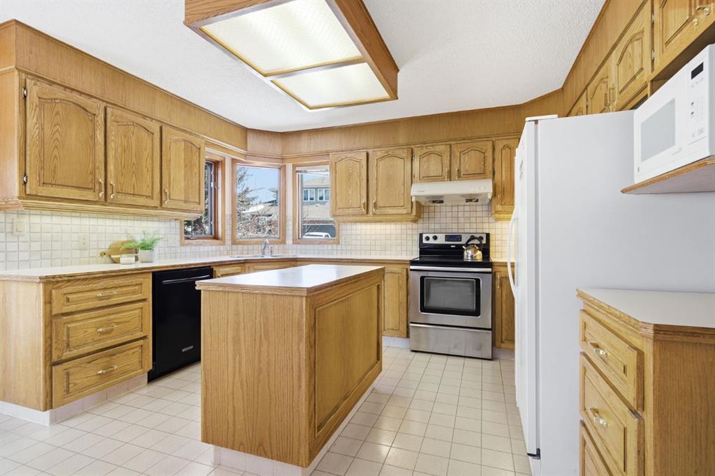 Welcome to this spacious two-storey home that is ideally located on a large corner lot in an exclusive enclave in the desirable community of Edgemont. Offering over 2,400 sq ft, 5 bedrooms, hardwood flooring on both levels and a layout that’s ready for a fresh vision. Step inside and you’ll fall in love with the functional layout, which boasts vaulted ceilings and large windows that bring in plenty of natural light. The front living room is spacious and bright with hardwood floors, and the formal dining room is a great space for hosting family dinners and holidays. The kitchen is centred around an island and connects easily to the breakfast nook and family room. A wood-burning fireplace and built-in shelving make this a comfortable space to unwind at the end of the day. There’s also a main floor bedroom/office along with laundry area and a 2-piece bath. Upstairs, you’ll find four good sized bedrooms, including a primary suite with a walk-in closet and ensuite. The basement is unfinished and ready for your development ideas. Recent updates include hardwood flooring, most of the window glass has replaced, Poly B removal, a radon mitigation system installed, and central air conditioning added for your comfort during those warm summer months. Outside, the spacious corner lot gives you a spacious yard with beautiful, mature trees and a double attached garage. This great home is walking distance to Edgemont school and has great public transportation options including 2 bus stops nearby and the Crowfoot and Dalhousie c-train stations just minutes away. Edgemont is one of northwest Calgary’s most established communities, known for its schools and convenient access to major routes and the stunning Nosehill Park and several great shopping areas!