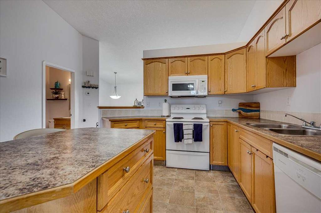 Check out this stunning bi-level townhome with NO CONDO FEES, located in a quiet cul-de-sac in the highly desirable Kentwood West neighborhood. This well-maintained home offers a bright, open layout and numerous upgrades throughout. Located near schools, shopping, parks and walking trails. Step inside to a spacious front entry with views of both levels, creating an inviting first impression. The main floor features soaring vaulted ceilings and oversized windows that fill the home with natural light throughout the day. You’ll appreciate the quality renovations, including updated paint and flooring, giving the space a fresh, modern feel. The living room is generously sized and perfect for entertaining family and friends. The kitchen will impress any home chef with its ample cabinet and counter space, stylish tile backsplash, and center island with eating bar. The dining area flows seamlessly from the kitchen, making gatherings and everyday meals effortless. A large bedroom and a 4-piece bathroom complete the upper level. Downstairs, the fully finished lower level offers two massive bedrooms, one of which could easily function as a cozy family room if desired. The primary bedroom serves as a true retreat with its spacious layout and his-and-hers closets. This level also includes another 4-piece bathroom and a convenient laundry room. Additional upgrades include in-floor heating rough-in and central vacuum rough-in, offering great potential for future comfort. The shingles were replaced within the past two years, providing peace of mind. Step outside to enjoy the private west-facing fenced yard, perfect for relaxing or entertaining. The rear of the property features a concrete parking pad and a footprint ready for your future garage. This move-in-ready home combines space, upgrades, and an excellent location—a fantastic opportunity in Kentwood West.