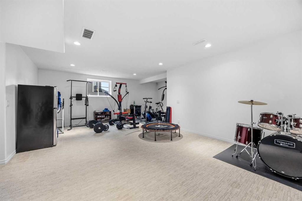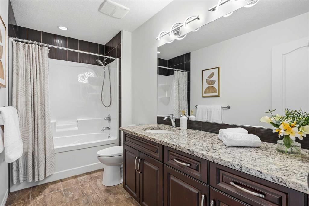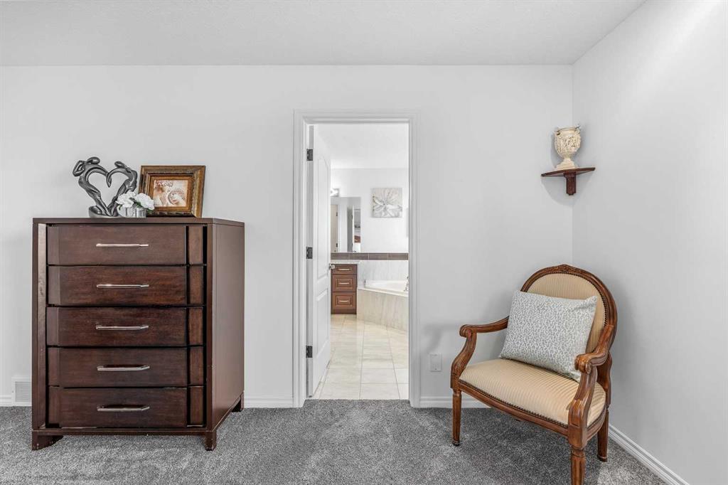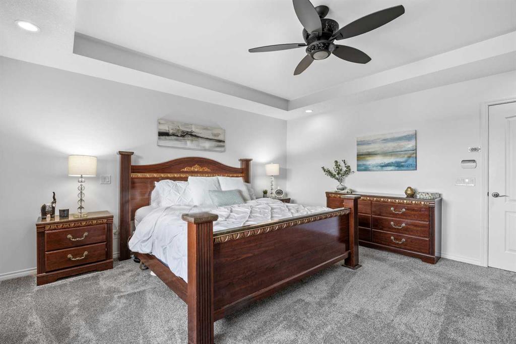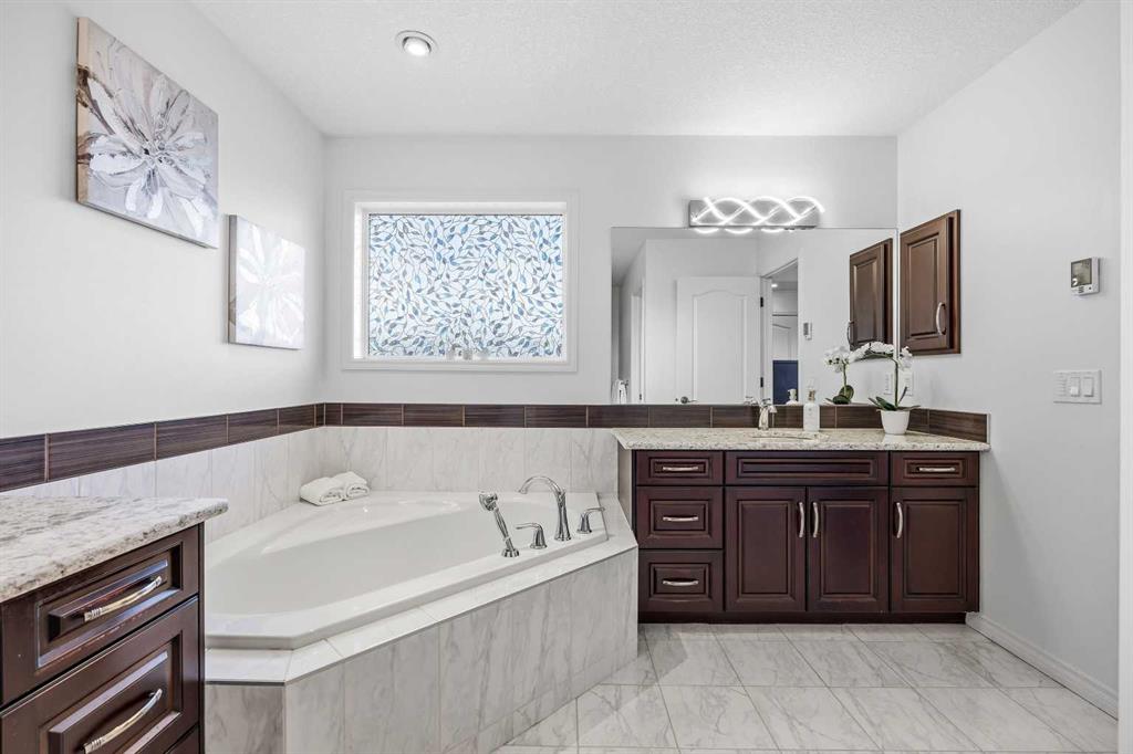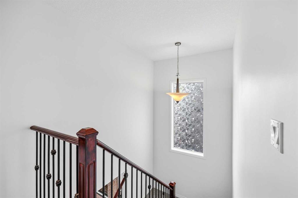 Open House March 14, 2-4pm. Welcome to Air Ranch, one of Okotoks’ most desirable communities. This beautifully maintained two-storey home offers nearly 2,700 sq. ft. above grade, four bedrooms, and a rare heated quad garage with a tandem third bay. (With approximately 826 sq. ft. of garage space, car enthusiasts and hobbyists will appreciate the tandem bay, complete with drains for washing, a sink, insulated doors, a separate ventilation fan for working on cars, and wiring for 220V.) Situated on a quiet street backing directly onto green space, pathways, and a playground, the location is ideal for families who value both privacy and connection to the outdoors. Inside, the main floor features a bright open layout with high ceilings and updated new vinyl flooring throughout. The kitchen is truly the heart of the home with two-tone cabinetry, granite countertops, updated backsplash, a raised eating bar, and a walkthrough pantry complete with built-ins and a coffee bar — an excellent setup for both everyday living and entertaining. The dining area and living room with gas fireplace overlook the backyard and open green space beyond. A main floor office or den, mudroom with great storage, and powder room complete the level. Upstairs you’ll find a spacious bonus room with vaulted ceilings, convenient upper laundry, and three generous bedrooms including the primary suite featuring heated floors in the ensuite, dual sinks, quartz countertops, a soaker tub, and a large walk-in closet. The main upper bathroom also features quartz countertops and an extended vanity with plenty of storage. The fully finished basement adds even more living space with a large recreation room with a second fireplace, fourth bedroom, and full bathroom, making it perfect for movie nights, guests, or a home gym. During the basement development, extra spray foam insulation was added for improved comfort and efficiency. Recent updates provide additional peace of mind, including new paint throughout the walls and baseboards (2025), new carpet (2025), a new refrigerator (2025), and a new hot water tank (2025). Additional features include central air conditioning, wiring for a hot tub under the deck, a dual-zone furnace, water softener, reverse osmosis to the fridge, and excellent storage throughout. Backing onto parks and pathways and located close to schools with quick access to Calgary, this home offers space, functionality, and a fantastic location in one of Okotoks’ most sought-after neighbourhoods.