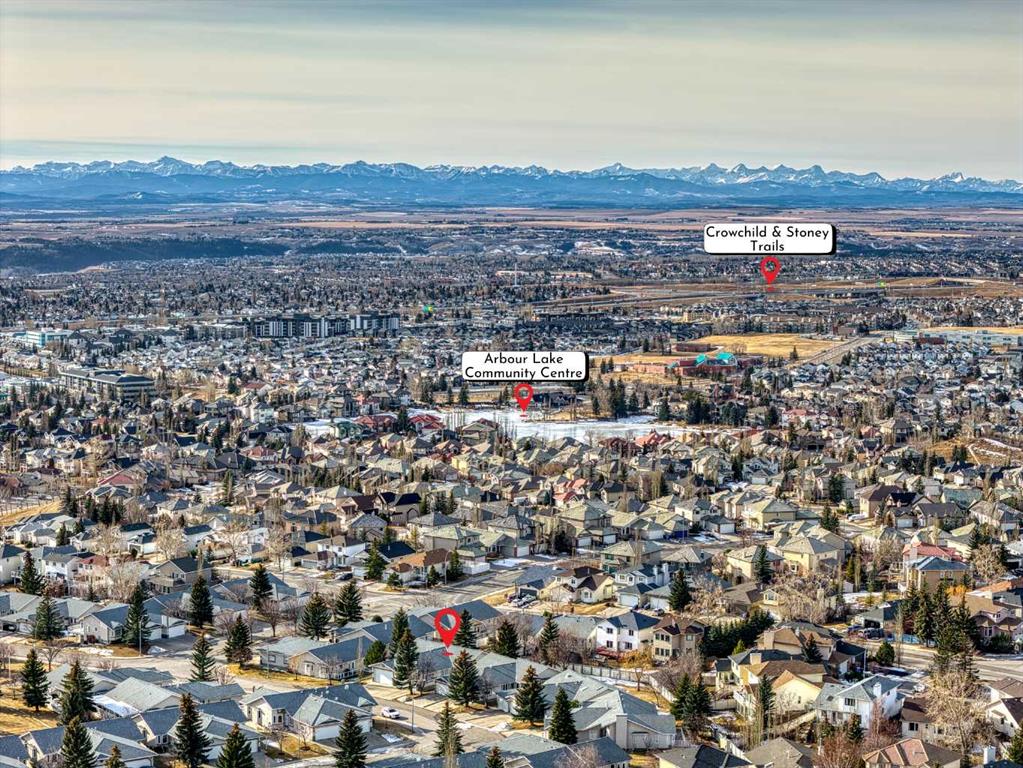 ***Open House Sunday, Feb 8, 12pm to 2pm**** Located in Arbour Lake—Northwest Calgary's only lake community—this home in Arbour Cliff Villas is an immaculately maintained semi-detached bungalow providing low-maintenance living. The main floor spans just under 1300 sq ft, featuring a spacious family room and adjoining dining room with vaulted ceilings. The large kitchen boasts stainless steel appliances, ample counter and cupboard space, abundant natural light from numerous windows, and a breakfast nook for casual dining. The primary bedroom includes an ensuite bathroom and walk-in closet, with a second main-floor bedroom next to the full main bathroom. Main-floor laundry in the mudroom offers counter space, cabinetry, and a linen closet. The basement features a large finished family room, two-piece bathroom, and workshop equipped with built-in workbenches and bright task lighting—ideal dimensions and setup for easy conversion to a third bedroom. Numerous upgrades throughout the years include hardwood flooring throughout the living room, dining room, and bedrooms; upgraded tile flooring in the kitchen; and a new furnace and central air conditioner (2024). Additional features include Gemstone lighting, an insulated and drywalled double-car garage, backyard deck, and gas outlet for barbecuing. Arbour Cliff Villas HOA ($150/month) handles snow removal, lawn care, and underground sprinkler maintenance. Arbour Lake residents enjoy exclusive access to a private lake, beach, clubhouse, tennis courts, skating, and fishing for an annual fee of $317.63 (incl. GST). Prime location near Crowfoot Crossing shopping, CTrain, and restaurants, with quick Stoney Trail access to the mountains.