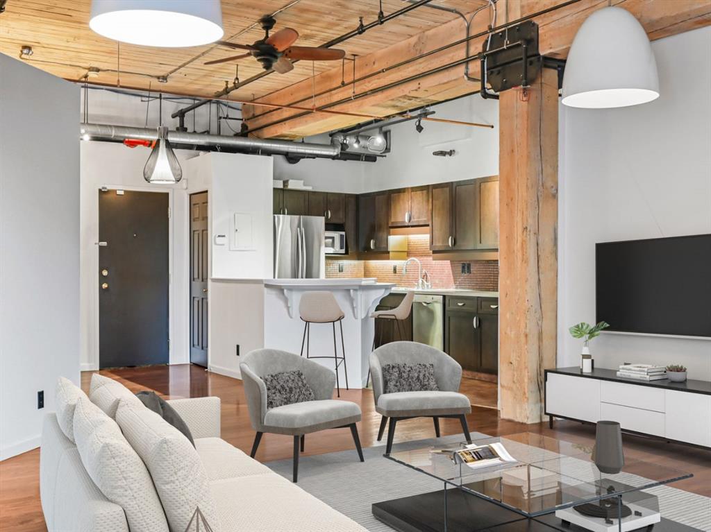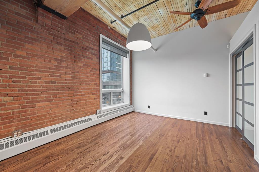 Exceptional live/work loft in the iconic Hudson Lofts—one of Calgary’s most sought-after warehouse conversions. This beautifully renovated unit seamlessly blends modern updates with timeless industrial character, offering a rare opportunity in the heart of the Beltline. West-facing exposure fills the space with warm afternoon light through expansive windows and a Juliette balcony off the living area, creating an inviting atmosphere and showcasing downtown energy. The open-concept layout highlights original fir wood ceilings, exposed beams, brick walls, and visible piping—architectural elements that give the loft its authentic character. The kitchen is thoughtfully designed for both everyday living and entertaining, featuring stainless steel appliances, generous counter space, and a rare walk-in pantry. The spacious bathroom offers a spa-like experience with a deep jetted soaker tub and a separate stand-alone shower. A key feature of this property is its flexible zoning, allowing for both residential and commercial use—ideal for professionals, creatives, or those seeking a seamless live/work environment. Additional conveniences include secure underground parking, a large private storage locker, elevator access, and a well-managed building. Located steps from Calgary’s best restaurants, cafés, shopping, entertainment, and business districts, Hudson Lofts offers an unbeatable urban lifestyle with excellent access to transit and downtown amenities. Opportunities like this are rare—schedule your private showing today and experience the character, flexibility, and lifestyle Hudson Lofts has to offer.