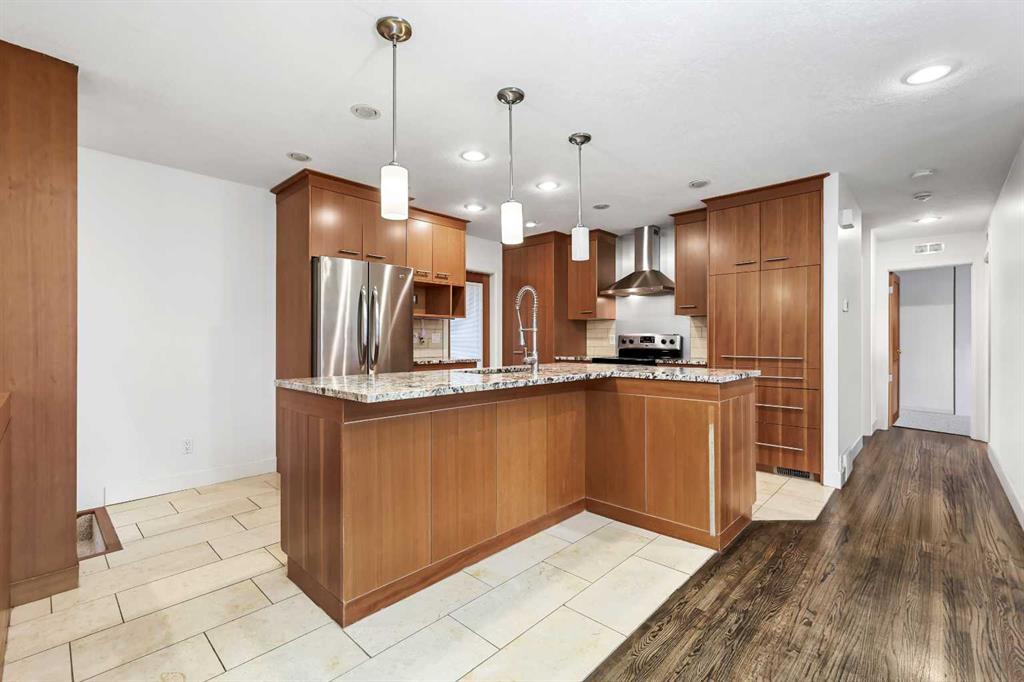 Nestled on a sunny, tree-lined corner lot in the heart of Wildwood, this beautifully updated bungalow blends timeless character with thoughtful modern touches. From the moment you step into the welcoming foyer, the attention to detail and quality craftsmanship are unmistakable. Investor Alert - Zoned H-Go. This home is perfect for a turn key home, buy and hold or redevelopment. The possibilities are endless. The open main living area is bright and inviting, featuring rich hardwood floors and large windows that fill the space with natural light. The kitchen offers both style and functionality, showcasing custom full-height cabinetry, granite countertops, and a spacious island — perfect for casual dining or entertaining. Additional thoughtful details such as built-in storage and soft-close cabinetry. The primary suite provides a comfortable retreat, complete with custom closets and warm, relaxing tones. Downstairs, the fully developed basement extends the living space with a large family area and an impressive wet bar with dual wine racks and display shelving — an ideal spot to unwind or host friends. The exterior has also been updated with attractive stucco and stone detailing. Outside, a generous yard and spacious deck provide the perfect setting for summer barbecues, family gatherings, or simply relaxing while the kids enjoy playing. There is also a large 22"x11" covered parking pad perfect for additional parking. Don’t miss this opportunity to own a classic Wildwood bungalow that perfectly balances comfort, quality, and charm.