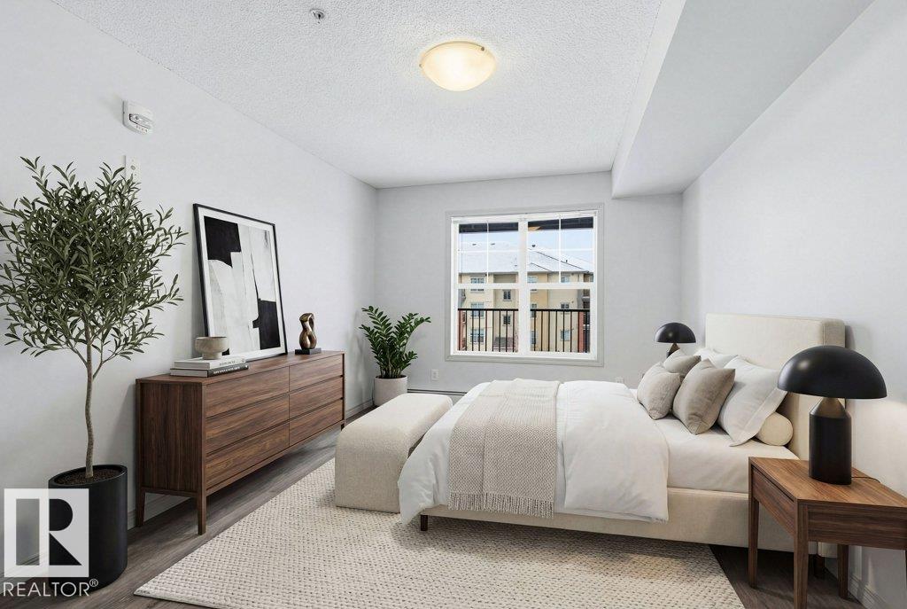 Great value in this modern 1 bedroom condo. Step up to the 3rd floor of Rutherford Village. This unit features an open concept layout with newer vinyl plank flooring throughout. The kitchen features modern appliances, a functional layout and ample counterspace. There is a great space for your dining table and all the room you would need for your home entertainment setup in the living room. Step onto the sizeable balcony complete with a natural gas hook up. The primary bedroom has a walk through closet and a pocket door into the main 4pc bathroom. This unit also features in-suite laundry, heated underground parking and a storage locker in the parkade. This building is located steps away from shopping and quick access onto the Anthony Henday for a convenient commute.