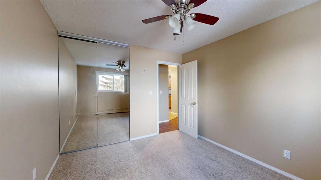 This well-maintained two-bedroom condo in Stettler offers a thoughtfully designed and comfortable living space. The open-concept living and dining area is filled with natural light, enhanced by patio doors that create a bright and welcoming atmosphere. The kitchen features warm wood cabinetry, granite-look countertops, and modern appliances including a dishwasher and microwave. A custom-built display unit in the hallway provides stylish storage for books and décor. Further down the hall are two bedrooms and a bright four-piece bathroom, ideal for everyday living. A separate laundry room includes a washer/dryer combo and stand-up freezer. An air conditioning unit adds extra comfort and air circulation. This home is enhanced by an east-facing patio, perfect for enjoying morning sun and a peaceful outdoor retreat. Efficiently designed and easy to maintain, this condo is well suited for individuals, retirees, or small families seeking a cozy and functional home.