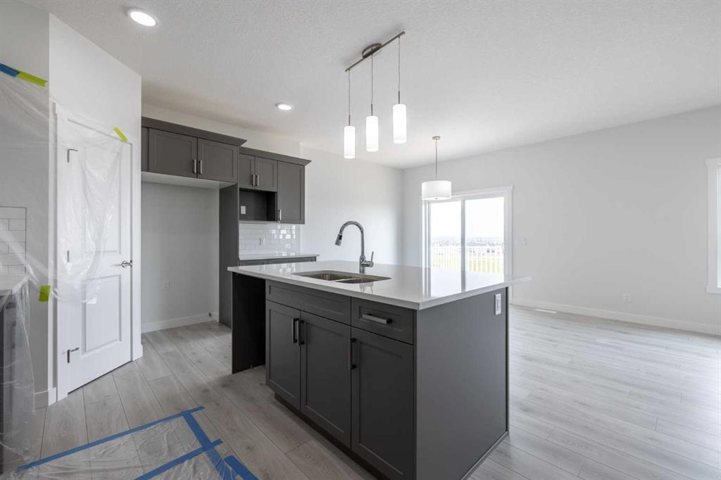 Modern Family Living with a Walkout Advantage! Meet The Jayne Walkout by Akash Homes, offering over 2,100 sq. ft. of thoughtfully designed living space in the scenic community of Key Ranch, Airdrie. Perfectly tailored for your growing family this home blends modern design with a functional layout, and elevated finishes throughout. The open-concept main floor features 9-foot ceilings, French-imported laminate, a spacious kitchen with quartz countertops, and a dedicated main-floor den—ideal for working from home. Upstairs, enjoy any of three comfortable bedrooms, including a luxurious primary suite with an expansive walk-in closet and private ensuite. Complementing your second-floor living space is a spacious bonus room and laundry area. The walkout basement offers endless possibilities for future development, extending your living space even further. The Jayne Walkout brings together style, comfort, and flexibility!