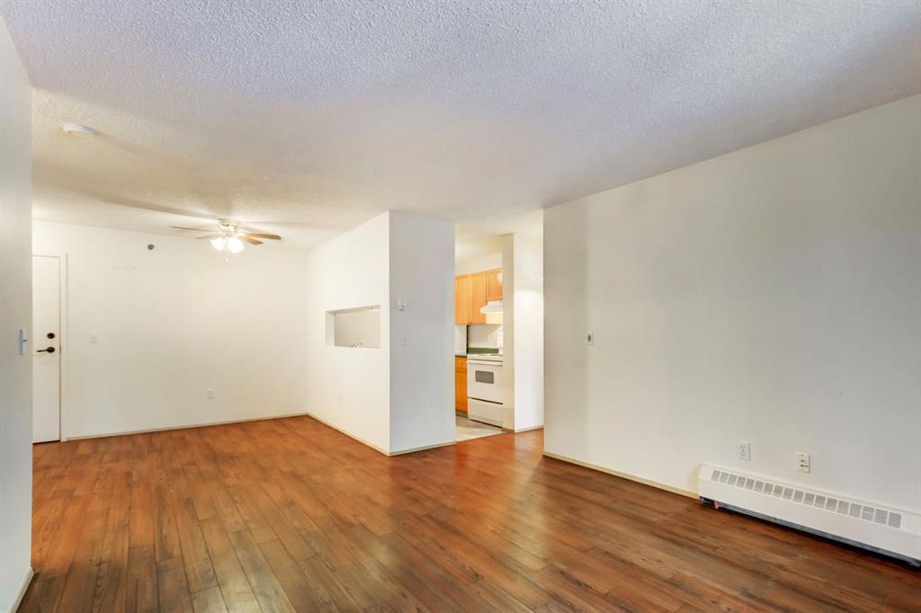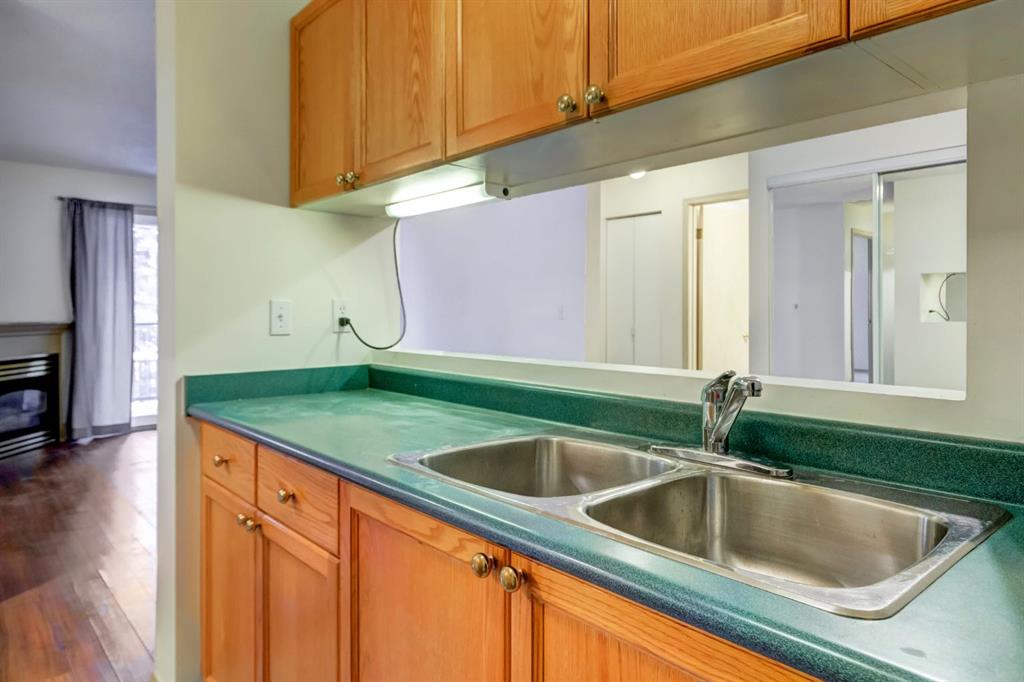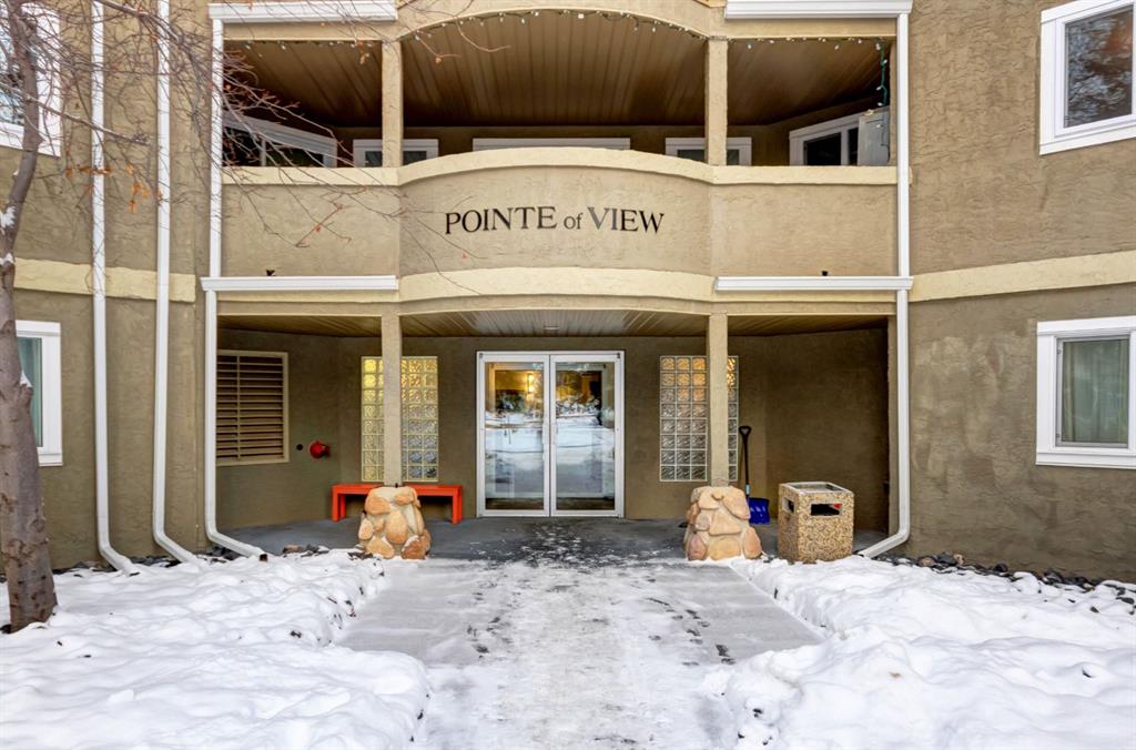 Spacious two bedroom apartment with mountain views. This thoughtfully designed two bedroom, two bathroom residence is located in the well maintained Pointe of View complex and features new flooring throughout. The open concept layout offers a welcoming living space centered around a cozy gas fireplace, complemented by large windows that frame panoramic mountain views. Step outside to a generous patio, perfect for enjoying fresh mountain air. The primary suite features a walk through closet and a private ensuite, while a second well proportioned bedroom and full bathroom provide comfortable accommodations for family or guests. Additional highlights include in suite laundry and assigned parking. Situated in a low density neighbourhood, residents enjoy access to an outdoor playground ideal for young families. This pet friendly community is located directly across from world class trail systems, making it an excellent choice for outdoor enthusiasts seeking both comfort and convenience in the heart of Canmore.