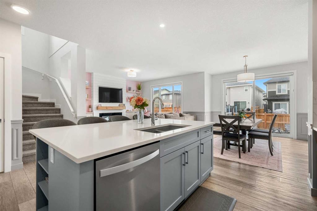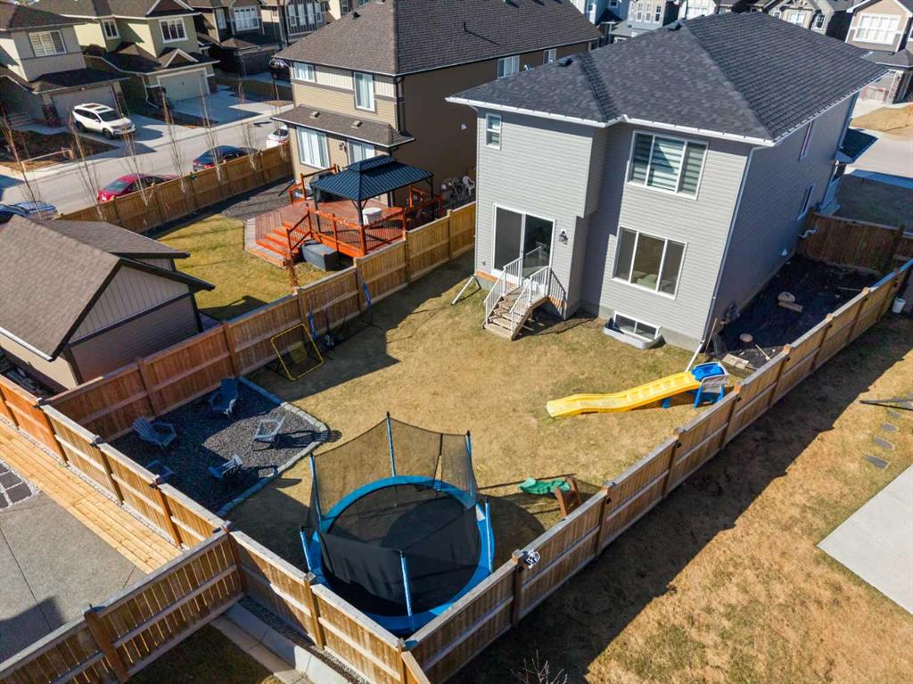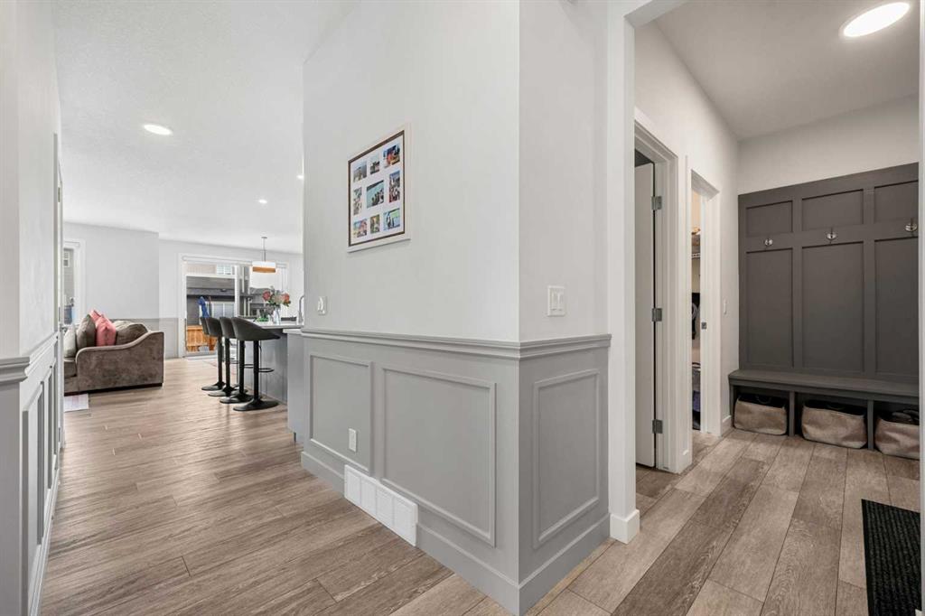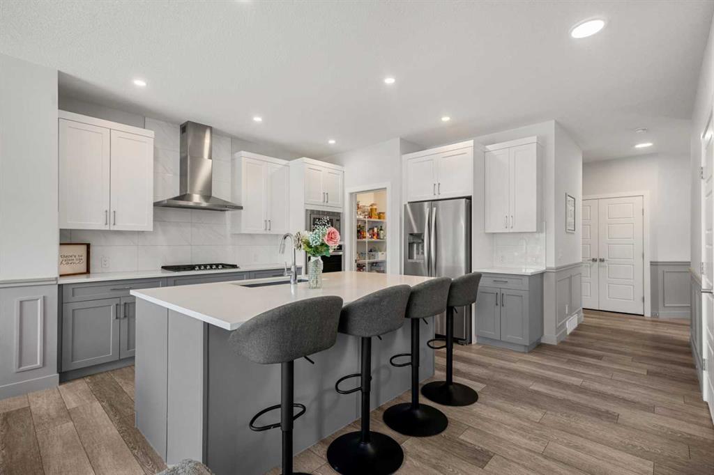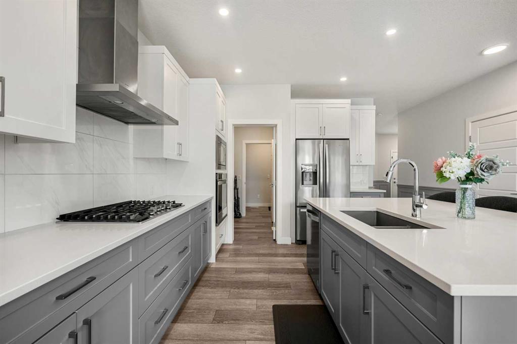 Welcome to this beautifully finished 2-storey home in the vibrant community of Heartland in Cochrane, offering a perfect blend of modern design, family-friendly functionality, and stylish living throughout. This home is also situated on a 5,733 SqFt pie lot with an abundance of room between neighbours, and the ability to store a small trailer or boat along the side of the home. All while still holding some of the New Home Warranty but without the headache of living in a construction zone and the additional costs to finish the back-yard! Step inside to a bright and open main floor featuring wide-plank flooring, large windows, and a thoughtfully designed layout. The living room is warm and inviting, highlighted by a sleek modern fireplace with custom built-ins and designer accents, creating the perfect space to relax or entertain. The kitchen is a true centerpiece, showcasing quartz countertops, stainless steel appliances, a gas cooktop, built-in wall oven and microwave, full-height cabinetry, and a large central island with seating — ideal for hosting and everyday living. The dining area flows seamlessly to the backyard, while a main floor office, a convenient 2-piece bath, and a functional mudroom complete this level. Upstairs, you’ll find an exceptional layout with four spacious bedrooms, including a stunning primary retreat featuring a luxurious 5-piece ensuite with dual vanities, a soaker tub, glass shower, and a walk-in closet. A second full bathroom, upper-level laundry, and a generous bonus/family room provide added comfort and flexibility for growing families. The fully developed basement offers even more living space with a large recreation area, perfect for movie nights or entertaining, along with a wet bar, an additional bedroom, and a full bathroom, ideal for guests or extended family. Outside, enjoy a fully fenced backyard with space for kids, pets, and outdoor gatherings, all set within a quiet and welcoming neighbourhood. Living in Heartland means access to parks, playgrounds, pathways, and nearby amenities, all within a short drive. Cochrane is known for its unique blend of small-town charm and outdoor adventure. Residents enjoy a vibrant downtown with local shops, cafes, and restaurants, along with easy access to amenities and services. Outdoor enthusiasts will love the proximity to the Bow River pathways, hiking and biking trails, golf courses, and the Rocky Mountains, making weekend getaways and year-round recreation effortlessly accessible.