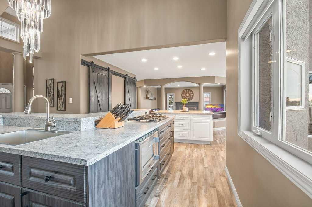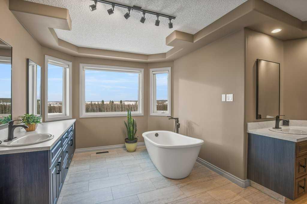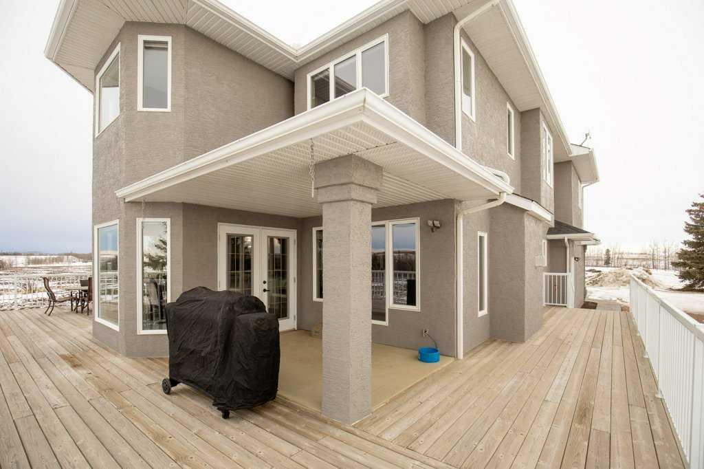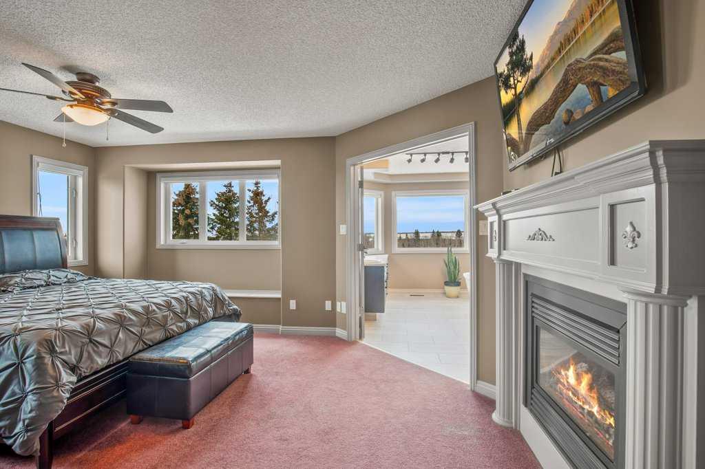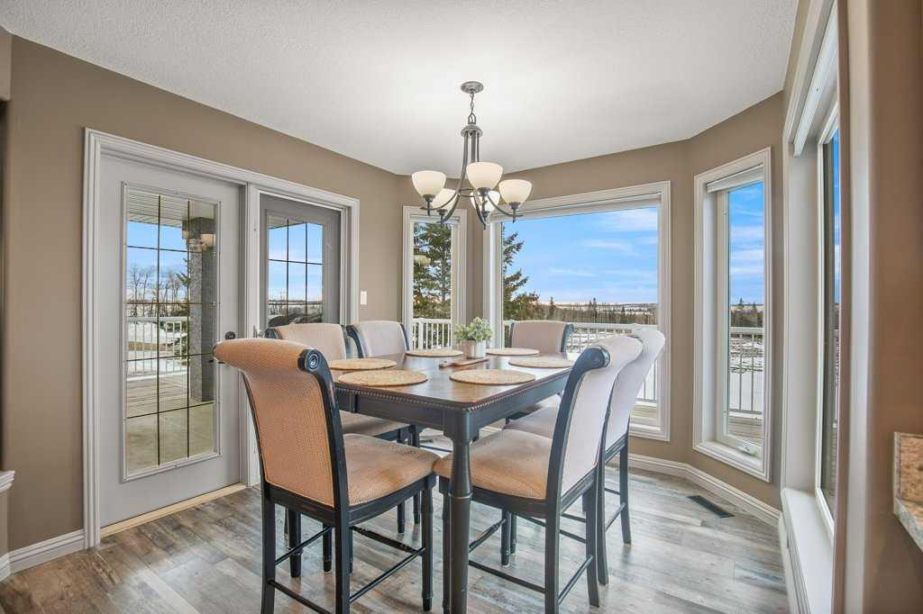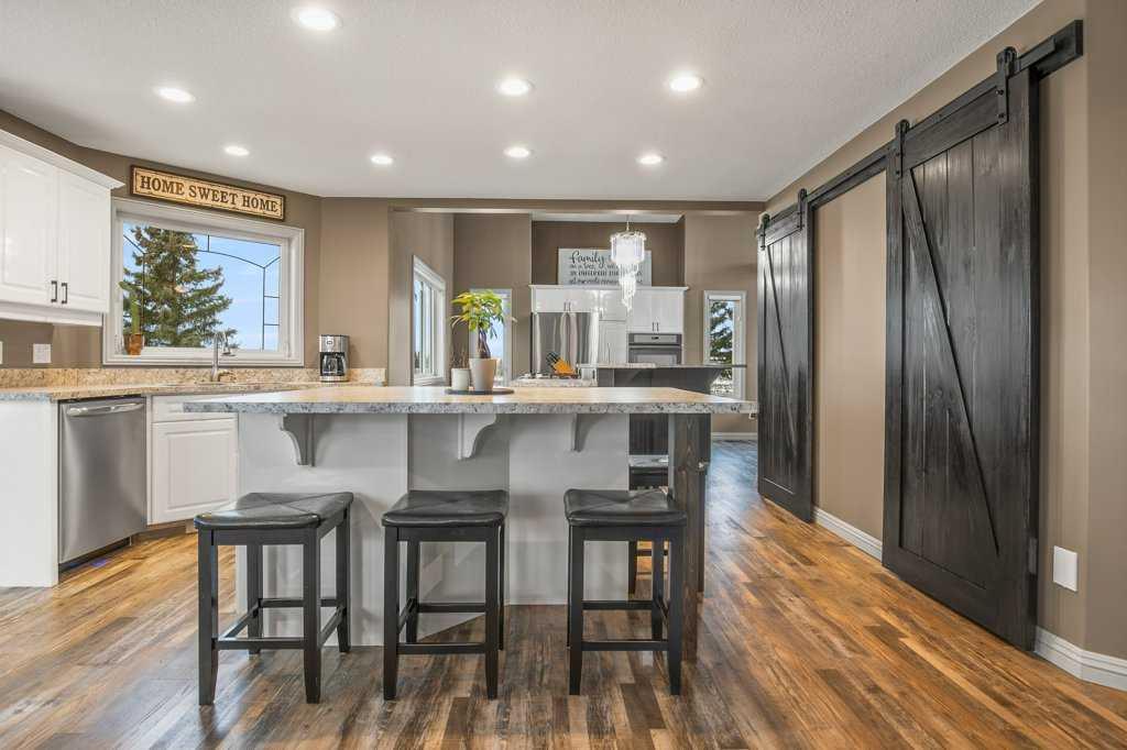 Welcome to this outstanding 80-acre gated agricultural property offering a rare blend of comfortable country living, income potential, and exceptional infrastructure. The land includes approximately 38 acres of farmable land and 15 acres of pasture, with the pasture currently rented to a neighboring farmer. Fully fenced and well-set up for horses, the property features corrals, waterers, hydrants, horse shelters, a tack room, and several outbuildings. Two wells service the property, and there are two oil leases generating ongoing revenue. The well-built two-story home, constructed in 1996, features a walkout basement and an expansive wrap-around deck showcasing breathtaking views. Inside, you’ll find vaulted ceilings, a sunken living room with elegant pillars, a gas fireplace, and a beautifully upgraded kitchen with a large island. The dining area opens directly to the deck, making it ideal for entertaining. Additional highlights include main-floor laundry and a double attached heated garage. Upstairs offers four generously sized bedrooms and an updated four-piece bathroom. The spacious primary retreat features walk-in closets and a stunning renovated ensuite with double vanity, full bathtub, and separate shower. The walkout basement provides even more living space with an additional gas fireplace, large patio wired for a hot tub, ample storage, a cold room, newer furnace, and central air conditioning. This property truly shines with its two impressive shops. The first is a 40’ x 60’ heated shop with radiant in-floor heat, lean-to drains, and two oversized doors—ideal for business operations, storage, or equipment. The second shop measures 76’ x 100’ and is divided into two sections, built on upgraded six-inch concrete. It includes five 14’ x 14’ overhead doors, four radiant heaters, and extensive workspace. A fully finished area—previously operated as a hair salon—offers in-floor heat, soundproofing, double drywall for fire protection, a full four-piece bathroom, washer and dryer, fridge, stove, oven, and could easily function as additional living quarters. Some shop bays are currently rented, with the tenant willing to remain. A rare opportunity to own a versatile, income-generating rural property with exceptional buildings, land, and a beautifully maintained home