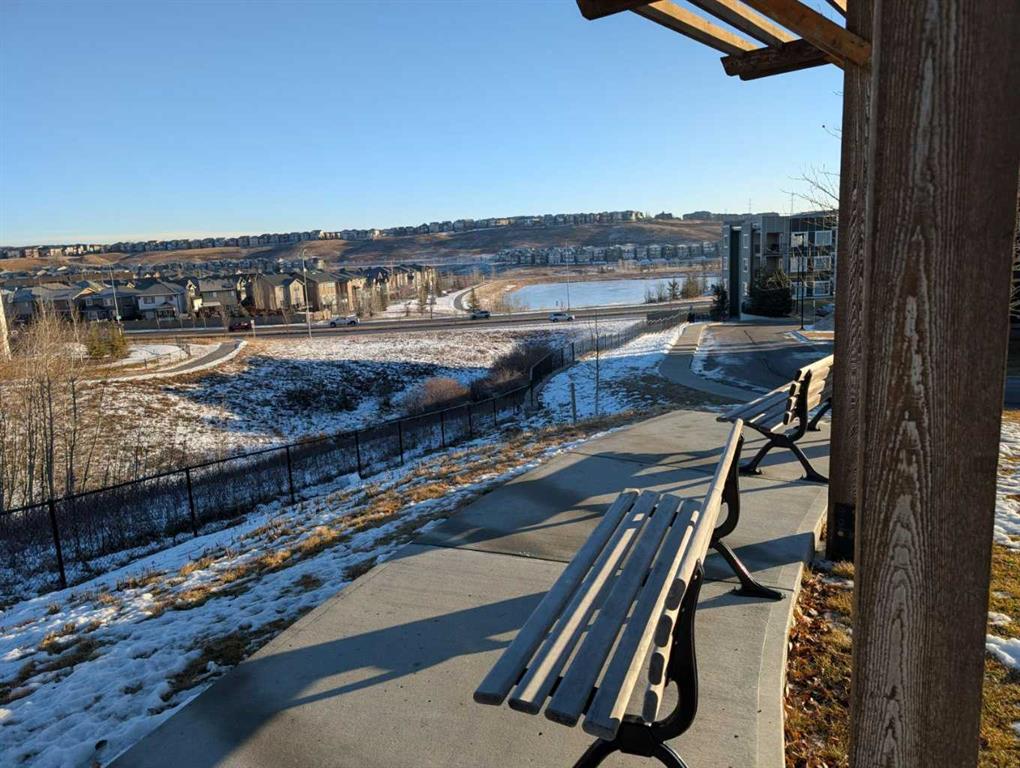 Welcome home to this immaculate, top-floor, south-east corner condo — a beautifully maintained 2-bedroom, 2-bath + den home located in one of NW Calgary’s most desirable communities. This premium corner unit offers an outstanding layout with abundant natural light throughout the day, thanks to its ideal SE exposure and extra windows. Quality upgrades include glass tile backsplash, rich LVP flooring, 9-foot ceilings, granite countertops in both the kitchen and bathrooms, an upgraded lighting package, comfortable in-floor heating throughout, and a bright, welcoming atmosphere. A spacious front entry greets you with double closets and discreetly tucked-away in-suite laundry. The open-concept living area is perfect for both everyday living and entertaining, featuring flat-panel cabinetry, Matte stainless steel appliances with new Microwave, generous storage, and a large peninsula island with breakfast bar. Step out onto your private SE-facing corner balcony and enjoy sunny mornings and warm afternoons — an ideal spot for coffee, relaxation, or entertaining. The primary suite features a walk-through closet to a private 4-piece ensuite. A second bedroom, additional full bathroom, and versatile den provide excellent flexibility for professionals, couples, or small families. Additional highlights include: - In-floor heating for year-round comfort - Titled underground parking stall conveniently located directly in front of the elevator - Secure bike storage - Pet-friendly building (with board approval) - Dedicated pet relief area located just outside the front entrance between the buildings This quiet, well-managed complex is surrounded by an extensive pathway network that winds throughout the community and connects seamlessly to Kincora and Evanston, making it easy to enjoy walking, biking, and the outdoors. Close to schools, shopping, restaurants, and everyday amenities, with quick access to Stoney Trail, Costco, CrossIron Mills, and the QEII. This home truly delivers on comfort, light, and convenience — all from a top-floor corner location with premium exposure. Be sure to view the 3D Virtual Tour.