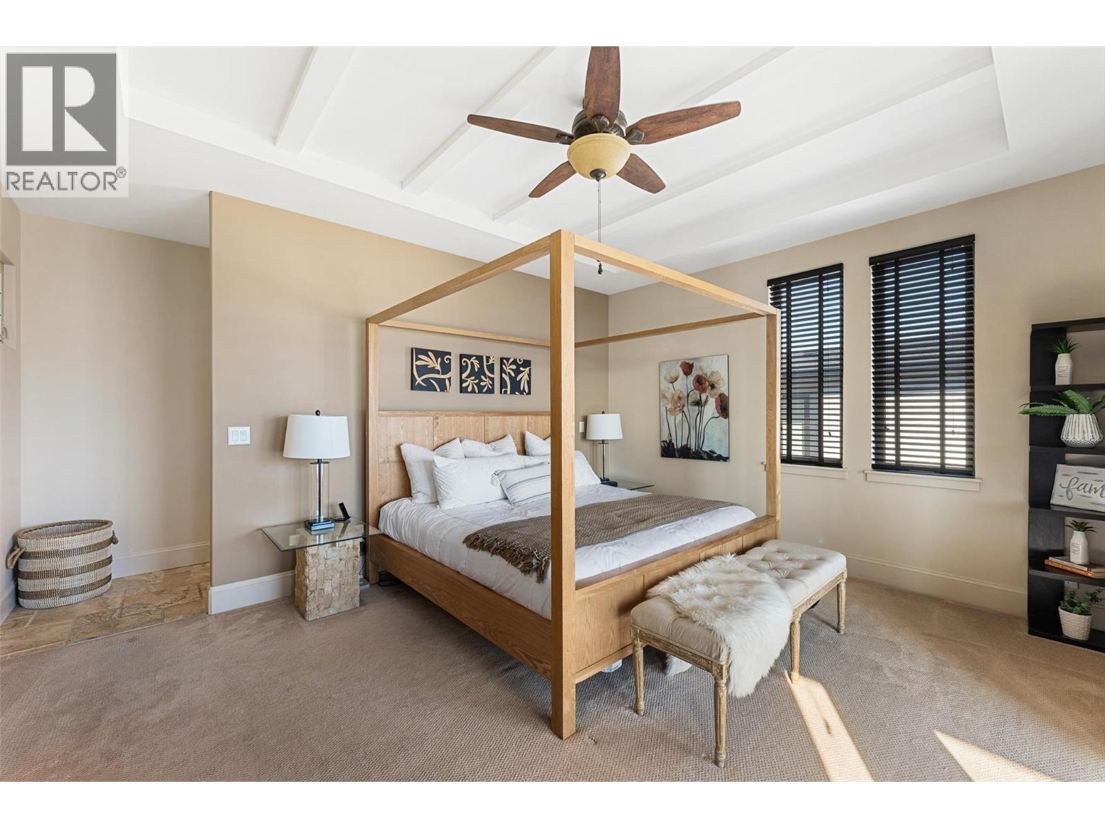 Set above Okanagan Lake in Lakeview Heights, this West Kelowna home offers the warmth and character of a Mediterranean-inspired villa, subtly echoing the relaxed hillside homes of Tuscany. Just minutes from the Westside Wine Trail, it feels connected to the surrounding vineyards, with natural stone, rich wood detailing, and sunlit rooms that open to the lake. On the main level, timber beams, textured walls, and a stone fireplace anchor the great room, where French doors lead to a covered lakeview patio with wood-inlay ceilings, infrared heaters, and space for relaxed dinners outdoors. The kitchen features hardwood floors, granite countertops, a contrasting island with seating, timeless cabinetry, and Bosch and Bertazzoni appliances. The entire upper floor is devoted to the primary suite, offering two walk-in closets, a spa-style ensuite with heated travertine, soaker tub, and walk-in shower, plus a private covered balcony with lake and valley views. On the walkout level, a generous recreation room, custom bar, and direct access to the pool terrace make entertaining effortless, from afternoon swims to evenings in the hot tub or around the firepit. A self-contained studio suite on the lower level adds flexibility for extended stays, or multi-generational living. Manicured landscaping, water features, an oversized double garage with abundant storage, and a convenient tiled dog wash complete a home that blends classic Mediterranean detailing with the relaxed Okanagan lifestyle.