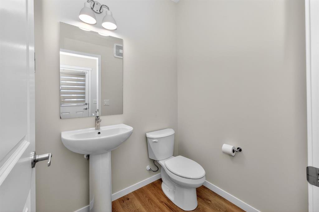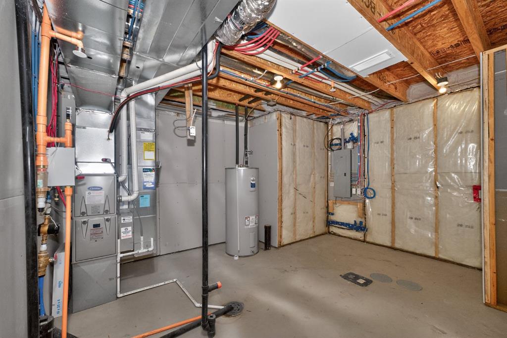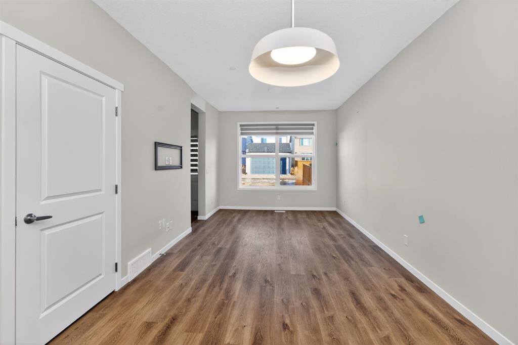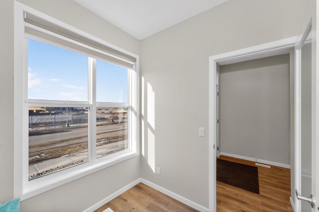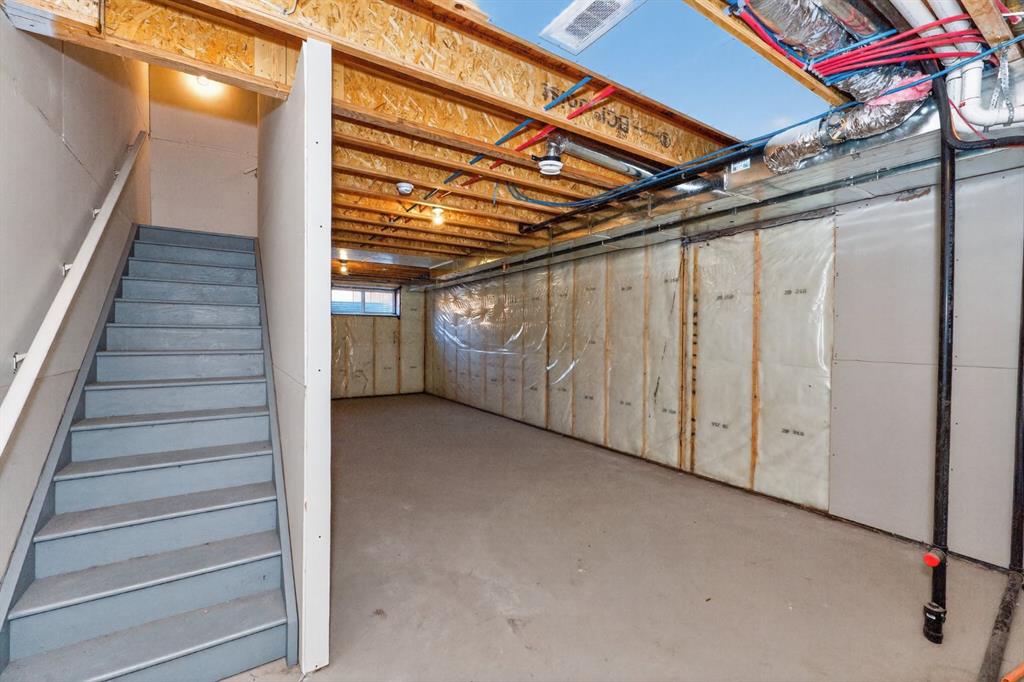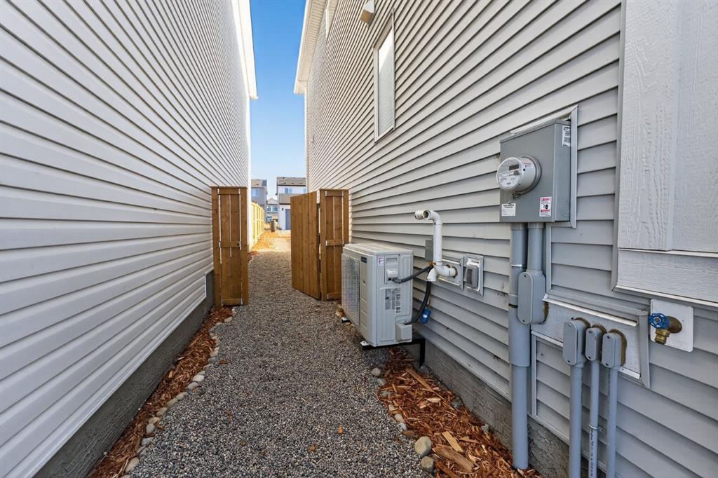 A beautifully maintained 2024-built detached home offering 3 bedrooms, 2.5 bathrooms, and a smart layout designed for modern living. The bright main floor features a versatile flex room, ideal for a home office, playroom, or sitting area, along with a convenient utility sink that adds everyday practicality and can easily be converted into a dog wash. The kitchen is both functional and flexible, featuring a gas stove with the option to convert to electric, while central air conditioning ensures year-round comfort. Upstairs, you will find 3 well-sized bedrooms, including a comfortable primary retreat. The basement is ready for future development, with rough-ins already in place, offering excellent long-term potential. Step outside to a low-maintenance backyard designed for easy living, complete with a gas BBQ hookup and a firepit area perfect for entertaining. The rear parking pad includes an upgraded electrical outlet, ready for future garage development or vehicle plug-in. An added awning over the front entrance enhances curb appeal and functionality. Located in the growing community of Hotchkiss, this move-in-ready home blends the benefits of newer construction with thoughtful upgrades already completed. Simply move in and enjoy.