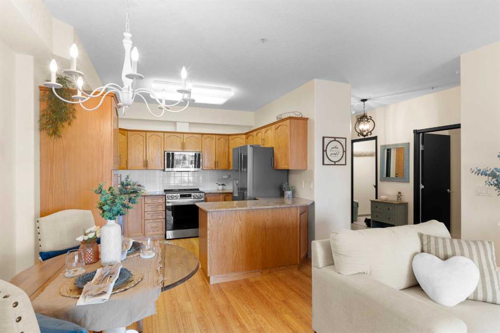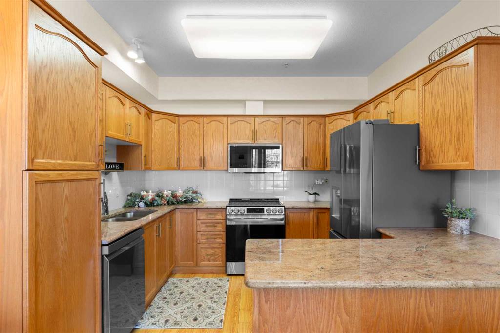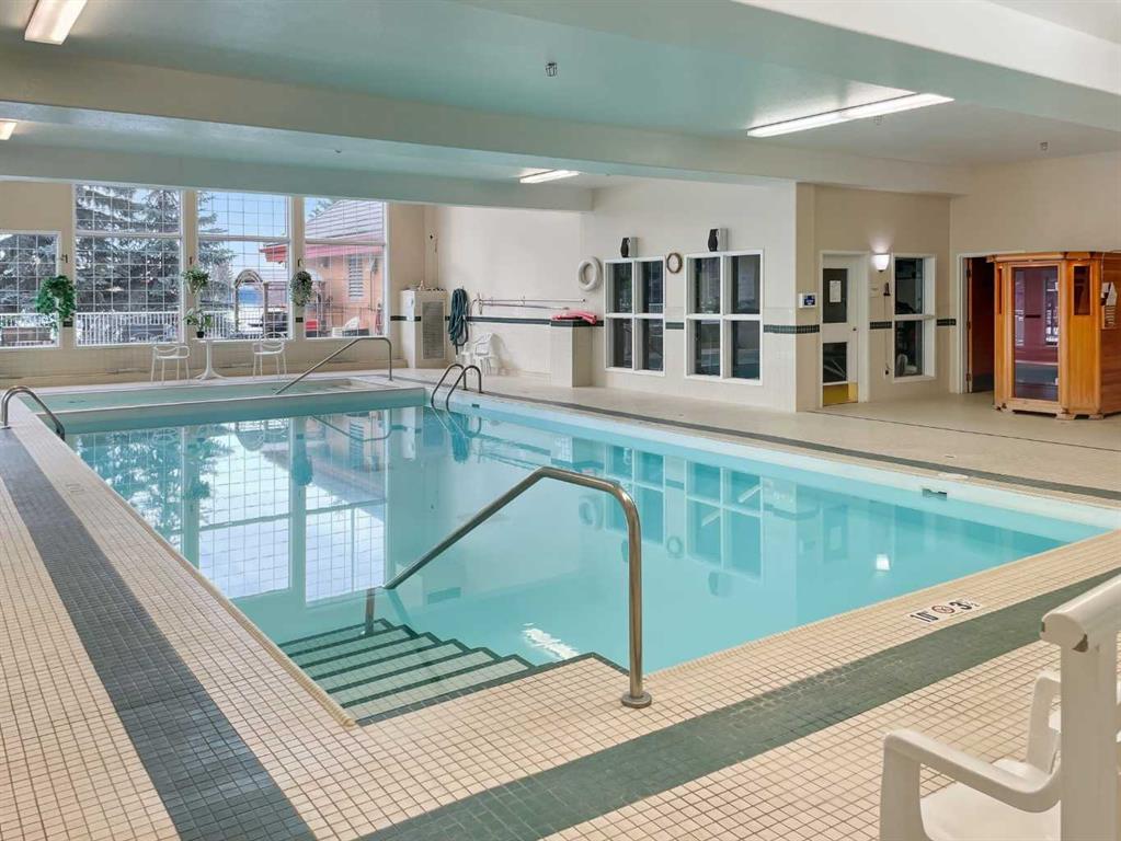 This 55+ secure building has a lot to offer, such as the indoor salt water heated swimming pool, hot tub, infrared sauna, gym, guest suites, craft room, pool tables, library, wood shop, car wash and the list goes on. This modern west facing unit has been updated with paint, lighting and new kitchen appliances, (2024). The unit boasts a very spacious (955 S/F) open floor plan. It has a good size kitchen with corner pantry and numerous solid oak cabinets. The open floor plan with its designated dining area, living room, that includes a cozy gas fireplace, 1 large bedroom with double closets, loads of storage and a spacious bathroom, as well as large storage / laundry room with cabinets. Enjoy summer nights on your private covered balcony with glass panels overlooking the front gardens and Capstone. Utilities including Power, Gas, A/C, Phone line, Water/Sewer, Garbage Pick Up, underground parking and Internet are all included in the monthly HOA fees. The building has had several updates including new roof on building, air conditioning unit, new tiling in the swimming pool and all hallways repainted in building. Pets allowed upon approval. If you are a snow bird or just looking to downsize and simplify your life, unit 330 at The Sierras of Taylor Drive could be perfect for you.