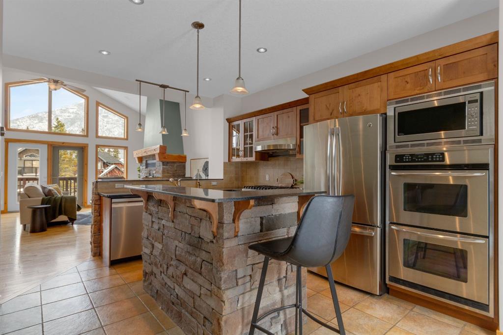 Stunning 5-Bedroom Home With Income Suite And Mountain Views. Discover an exceptional blend of luxury, comfort and flexibility in this beautifully designed five bedroom, four bathroom home set against the backdrop of the Canadian Rockies. Thoughtfully laid out, the residence includes a self contained one bedroom suite, ideal for guest accommodation or rental potential. Bright, contemporary living spaces are framed by mountain views, while the gourmet kitchen is equipped with stainless steel appliances, granite countertops, and double oven, perfect for both everyday living and entertaining. The spacious primary suite offers a private retreat with a five piece ensuite, walk in closet, and direct access to the expansive deck. The outdoor space offers new landscaping with a fire pit. Well maintained home with several recent upgrades including brand new carpet. Whether you’re seeking a full time home, a weekend escape, or a smart investment opportunity, this property delivers lifestyle, versatility and unforgettable Rocky Mountain living.