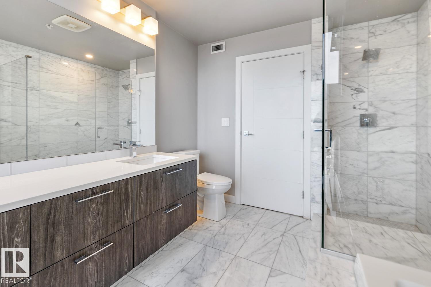 Too many upgrades to mention!! Welcome to Suite #3300 @ Encore Tower, an amazing 2 Bedroom, 2 Full Bath that is located on the ENTIRE SOUTH WALL of the Tower! This property offers some of the best city and rivervalley views that Edmonton has to offer! Suite upgrades include; Carrara Marble throughout: a fireplace feature wall, tile surfaces in both bathrooms, and front entry tile, as well as engineered glue-down hardwood floors. The unit offers a 100ft+ span of floor-to ceiling windows, with window coverings. Modern design includes a stylish kitchen with full-size stainless steel appliances, quartz countertops, a spacious island with seating, 9-foot ceilings* and in-suite laundry (full-size). Life at Encore includes many conveniences - friendly concierge, an inviting party-room, 4th floor sundeck and a private fitness room. Steps from ICE District, numerous dining choices, and an al fresco market?... Do not miss this opportunity at the city's ultimate central location, and best new-construction value!