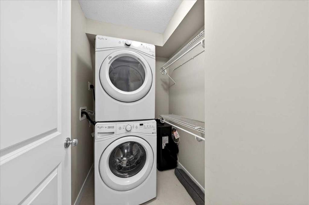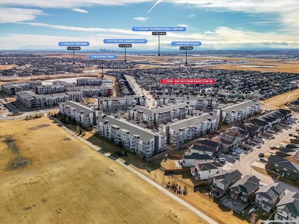 Welcome to Orchard Sky in the desirable community of Skyview Ranch! This 3rd-floor unit offers a bright, open-concept layout featuring 2 bedrooms and 2 full bathrooms and SW facing balcony with an abundance of natural lighting. A built-in study/desk area with floating shelves provides the perfect space for working from home, while the in-suite laundry room includes a stacked washer and dryer along with additional shelving and storage. The main living and dining area is finished with cork flooring, complemented by carpeted bedrooms and tile in the bathrooms and laundry room. The modern kitchen is equipped with quartz countertops, stainless steel appliances, and ample cabinet space—ideal for both everyday living and entertaining. This unit also includes a titled underground parking stall and an assigned storage locker for added convenience. Located close to green spaces, playgrounds, schools, restaurants, and public transportation, with quick access to Stoney Trail and Deerfoot Trail, and just a short commute to the airport—this home offers both comfort and connectivity. Don’t miss your opportunity to call this fantastic property home! ***SEE VIRTUAL TOUR***