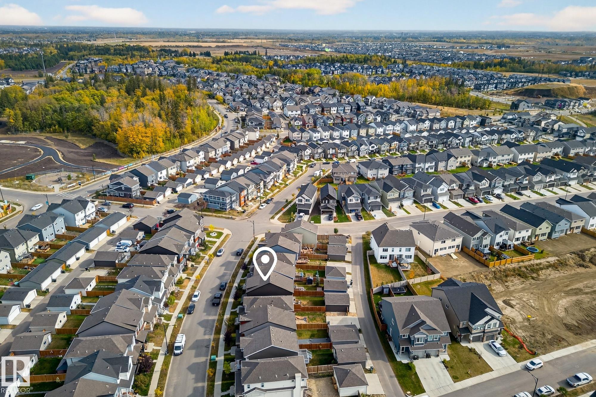 This chic and practical home spans 1,705 square feet and includes 3 bedrooms and 2.5 bathrooms, all set within a landscaped yard and featuring a double detached garage. Nestled in the sought-after Edgemont community on Edmonton's Westside, this family-friendly neighborhood boasts ravines, ponds, and scenic walking trails. As you step inside, you're greeted by soaring 10' & 11' ceilings in the foyer and living room, complemented by elegant spindle railing throughout. The main floor showcases stylish Luxury Vinyl Plank flooring and a contemporary electric fireplace, while the rear kitchen, equipped with a chimney hood fan, basks in abundant natural light. The kitchen and upstairs bathrooms feature stunning white quartz countertops. Plus, enjoy the convenience of SMART home technology. Just one block away is the community park, and the fully funded K-9 public school is just a few blocks from your doorstep.