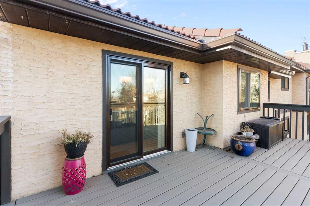 This beautifully updated +55 Walkout Bungalow Villa is a rare find in highly sought-after Strathcona Park, Horizon Village Strathcona—tucked into a quiet, private end-unit location, beautifully renovated, exceptionally bright and backing onto manicured lawns for a serene, low-maintenance lifestyle. The main level features refreshed hardwood, fresh paint, knock down ceilings on main, fixtures, new baseboards and interior doors, plus all new blinds and curtains throughout. The showpiece kitchen has been completely transformed with new cabinetry, a massive quartz island, updated appliances, and a smartly designed laundry closet with new stacking washer/dryer. Enjoy a bright, open, updated living room with dining space, and a cheerful kitchen breakfast nook. Outside, the new deck is impressively sized and offers a wonderful sense of privacy, overlooking the greenspace—ideal for relaxing, entertaining or growing flowers. Downstairs, the walkout level offers a spacious family room, a second bedroom, a 3-piece bath, massive storage, and access to a covered patio—ideal for relaxing outdoors in any weather. Key updates include most windows replaced (excluding the primary bedroom), hot water tank (2025), and furnace (2014). Residents also enjoy a welcoming community with fantastic neighbours and an active social calendar, plus access to a two-level clubhouse with kitchen, recreation room, and banquet area. A must-see home in an unbeatable location—book your showing quickly. Villas in this complex rarely come available, especially with renovations this extensive.