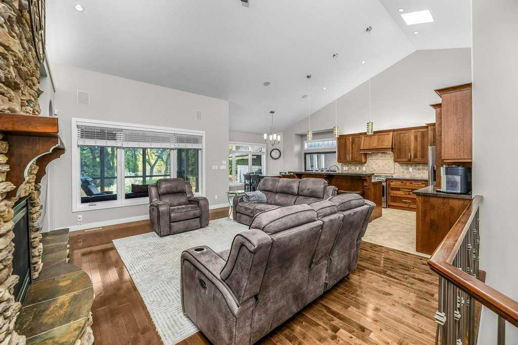 Welcome to this stunning custom-built bungalow by the Platinum Homes. Nestled in a quiet close in the sought-after neighborhood of Oriole Park West, this one-of-a-kind home offers the perfect blend of privacy and convenience. Backing onto peaceful, mature trees and a tranquil green space, you'll enjoy the serenity of an acreage lifestyle while still benefiting from all the amenities of city living. From the moment you walk through the front door, you're greeted with views right to the trees in the back yard for your own private oasis. This home is bathed in natural light, thanks to Sun Tunnels that create a bright and calming atmosphere throughout the main floor. The main level features a gorgeous living room with a stunning stone floor to ceiling surround fireplace, seamlessly connected to the open-concept kitchen and dining area — perfect for entertaining. The kitchen boats Maple Cabinets, a large island and raised eating bar. Hardwood floors in the living room, primary bedroom and leading down the stairs adding warmth and elegance. The spacious primary bedroom is a true retreat, complete with a luxurious spa-inspired ensuite and heated floor that invites relaxation. Downstairs, you'll find a large family room and three generously sized bedrooms, each with big windows and high ceilings that make the space feel open and inviting. The in-floor heating continues on this level, providing year round comfort. This exceptional home includes four bedrooms and three large bathrooms, offering plenty of space for families of all sizes. Additional features include a double attached, oversized heated garage with built-in storage, and a second detached garage at the back of the property with convenient back-alley access. Enjoy your morning coffee listening to the birds , or watching the game with your friends in the 3 season heated sun room. Another feature of this home is Generlink plug in and generator. There is also racedeck flooring in both garages. The fridge, stove and dishwasher are less then two years old. Rinnai hot water on demand and water softener are both only two years old. There is also basement entrance from the garage. Sound surround in the living/kitchen area and Family room. No more hanging Christmas lights permanent lighting has been installed with a variation of colours set on a timer and remote.