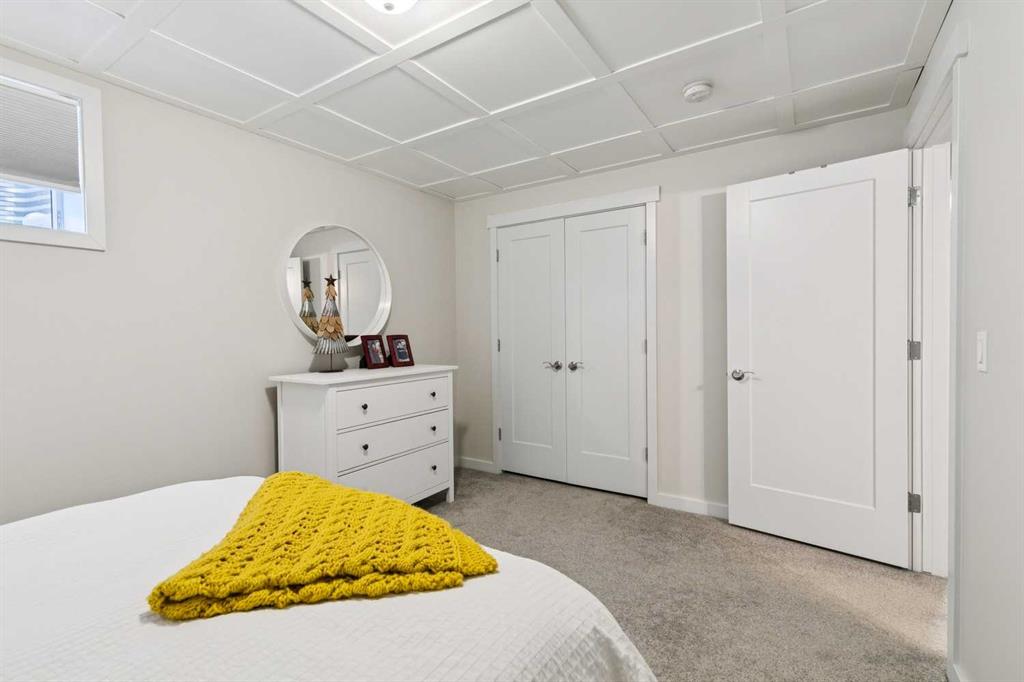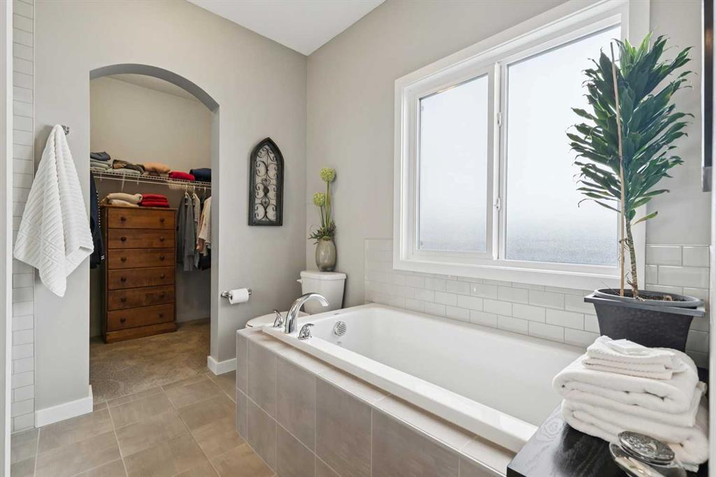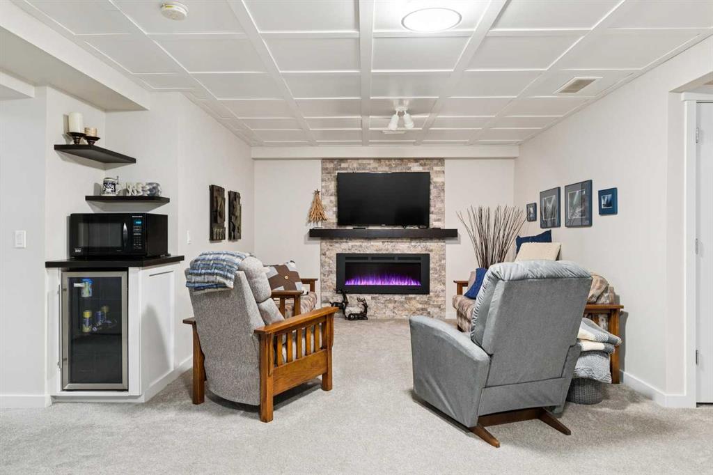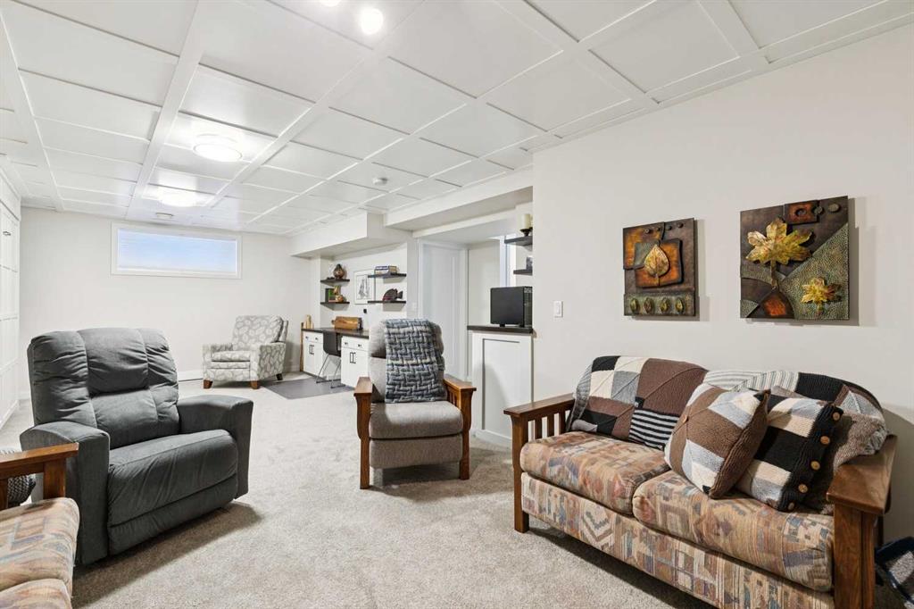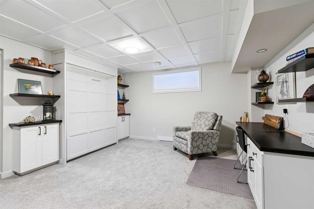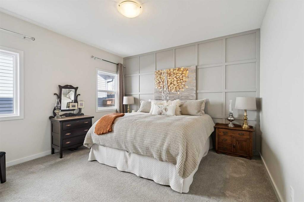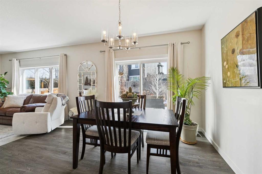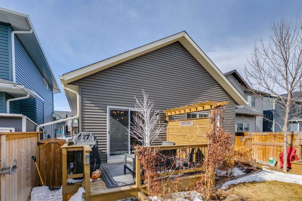 Welcome to this beautifully maintained custom-built bungalow in the family-friendly community of Ravenswood in Airdrie. Offered by the original owners, this home has been meticulously cared for and thoughtfully designed, creating a warm and comfortable space that shows pride of ownership in every detail. The spacious front entry with elegant spindle railings offers a bright and welcoming first impression. The open-concept main floor features a beautiful white kitchen with granite countertops, classic tile backsplash, stainless steel appliances, and a large corner pantry, providing both style and function. The generous island offers plenty of workspace and seating, while the dining area flows seamlessly into the large living room anchored by a cozy gas fireplace, creating an inviting place to gather with family and friends. The primary bedroom is conveniently located on the main floor and offers a relaxing retreat complete with a walk-in closet and a well-appointed ensuite featuring a soaker tub, walk-in shower, and large vanity with plenty of storage. Throughout the home you will notice thoughtful feature walls and design details that add warmth and character. The fully developed basement expands the living space beautifully, offering a large family room with a striking ceiling, electric fireplace feature wall, and built-in media area. A Murphy bed makes the space ideal for overnight guests, while the built-in desk area creates a practical workspace. Two spacious bedrooms with impressive closet space and a stylish bathroom with a tiled shower make this level perfect for family or visitors. The basement also offers excellent storage throughout, making organization easy. Outside, the beautifully landscaped backyard has clearly been lovingly maintained, featuring stunning garden beds and a charming patio area perfect for relaxing or entertaining. Additional highlights include air conditioning, new carpet, and abundant storage throughout the home. Ideally located steps from Airdrie Francophone School and Heloise Lorimer School, and only minutes to restaurants, shopping, and everyday amenities with easy access to Highway 2 for commuters. This is a rare opportunity to own a truly immaculate bungalow in a fantastic location.