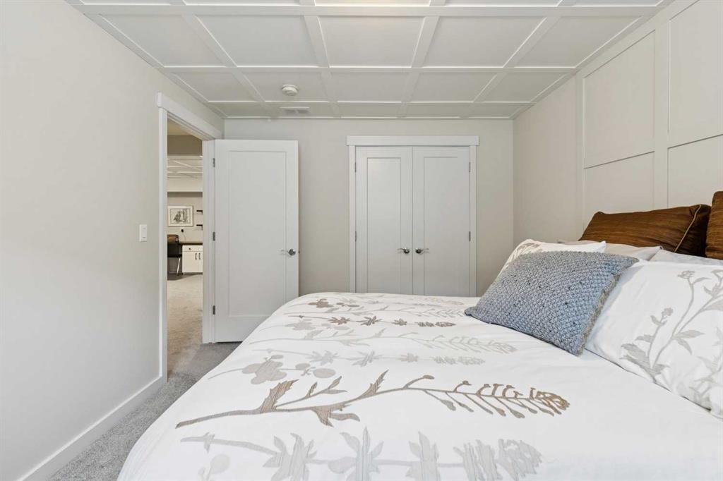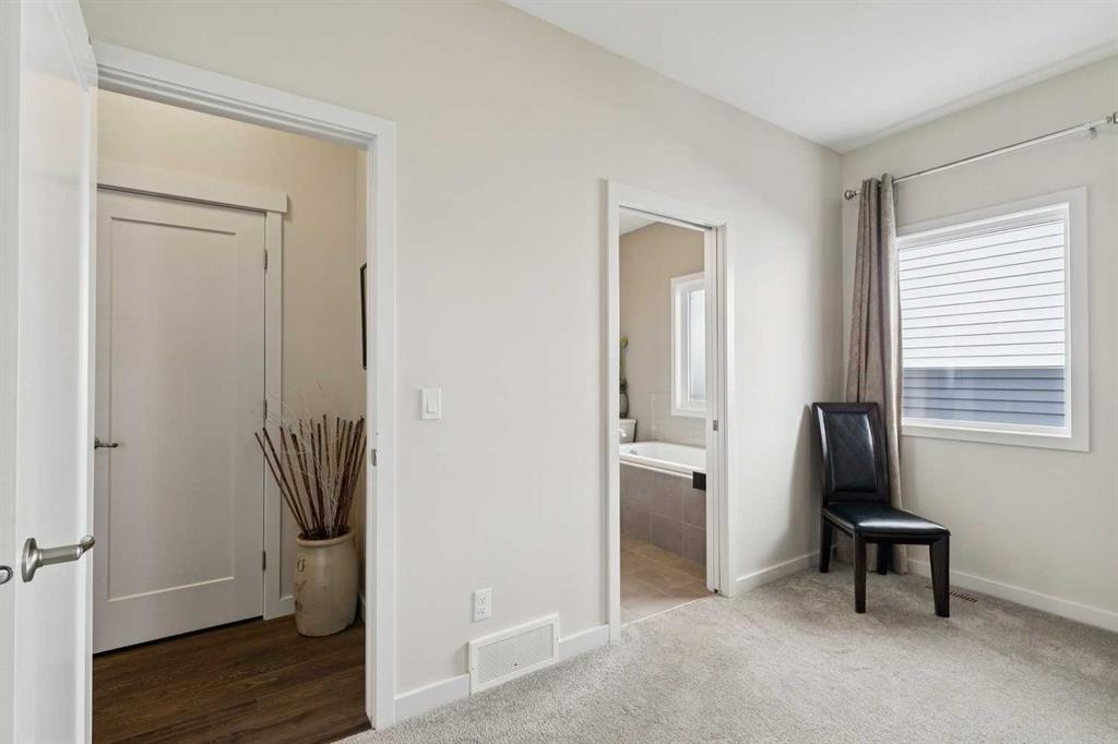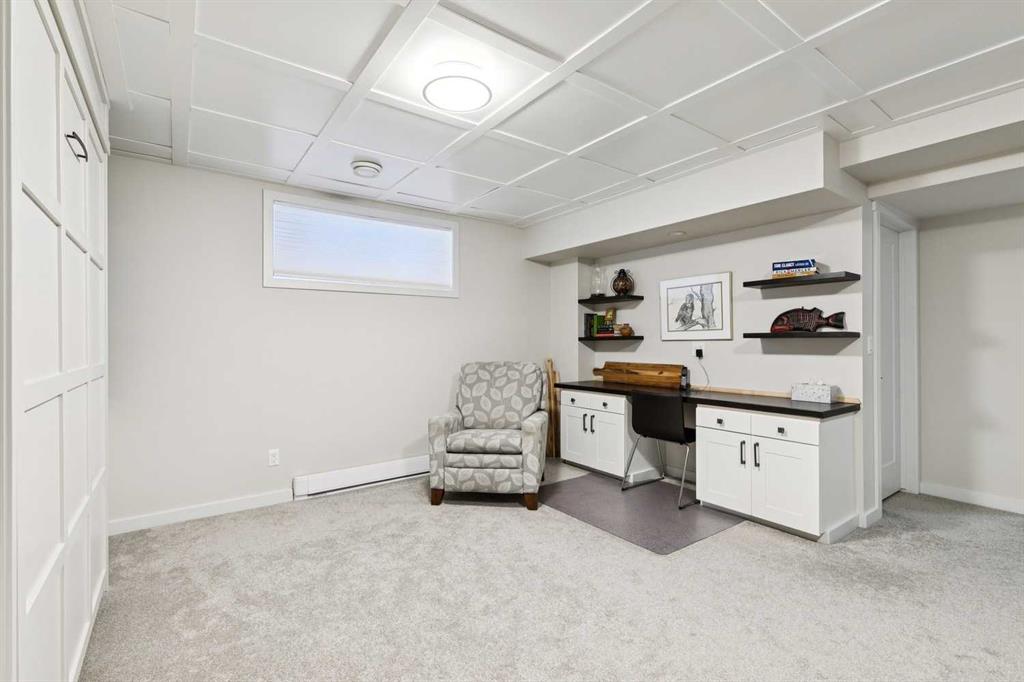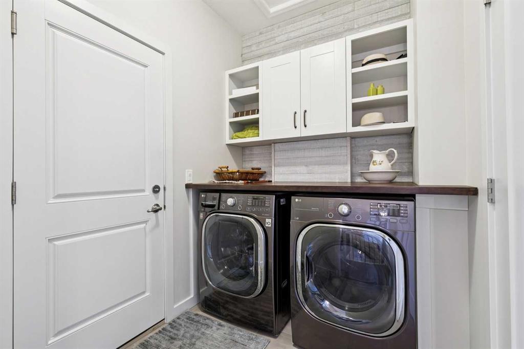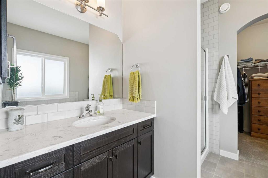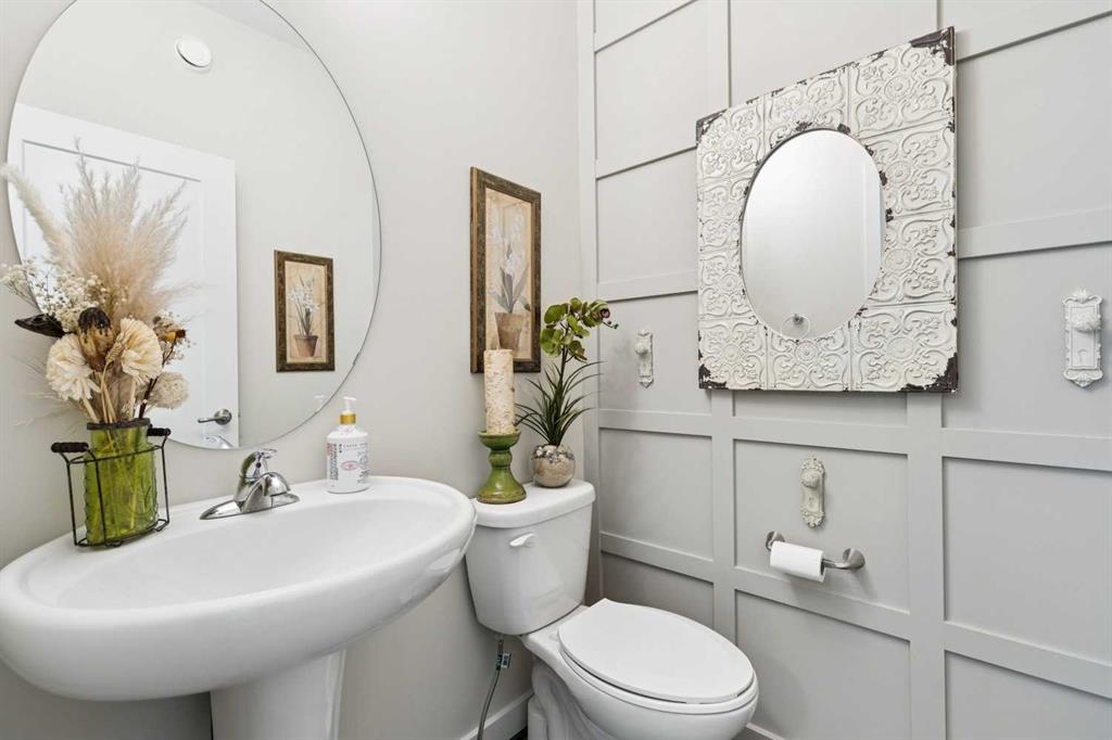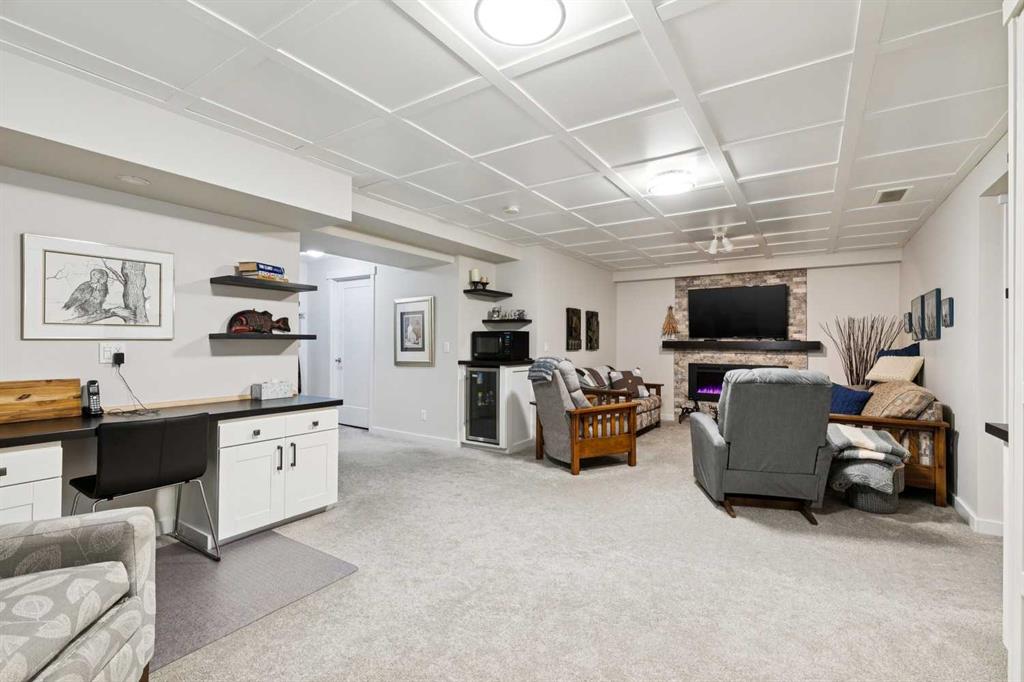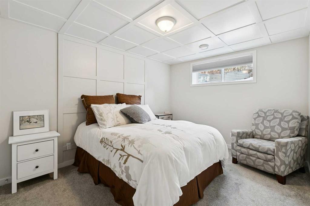 Welcome to this beautifully maintained custom-built bungalow in the family-friendly community of Ravenswood in Airdrie. Offered by the original owners, this home has been meticulously cared for and thoughtfully designed, creating a warm and comfortable space that shows pride of ownership in every detail. The spacious front entry with elegant spindle railings offers a bright and welcoming first impression. The open-concept main floor features a beautiful white kitchen with granite countertops, classic tile backsplash, stainless steel appliances, and a large corner pantry, providing both style and function. The generous island offers plenty of workspace and seating, while the dining area flows seamlessly into the large living room anchored by a cozy gas fireplace, creating an inviting place to gather with family and friends. The primary bedroom is conveniently located on the main floor and offers a relaxing retreat complete with a walk-in closet and a well-appointed ensuite featuring a soaker tub, walk-in shower, and large vanity with plenty of storage. Throughout the home you will notice thoughtful feature walls and design details that add warmth and character. The fully developed basement expands the living space beautifully, offering a large family room with a striking ceiling, electric fireplace feature wall, and built-in media area. A Murphy bed makes the space ideal for overnight guests, while the built-in desk area creates a practical workspace. Two spacious bedrooms with impressive closet space and a stylish bathroom with a tiled shower make this level perfect for family or visitors. The basement also offers excellent storage throughout, making organization easy. Outside, the beautifully landscaped backyard has clearly been lovingly maintained, featuring stunning garden beds and a charming patio area perfect for relaxing or entertaining. Additional highlights include air conditioning, new carpet, and abundant storage throughout the home. Ideally located steps from Airdrie Francophone School and Heloise Lorimer School, and only minutes to restaurants, shopping, and everyday amenities with easy access to Highway 2 for commuters. This is a rare opportunity to own a truly immaculate bungalow in a fantastic location.