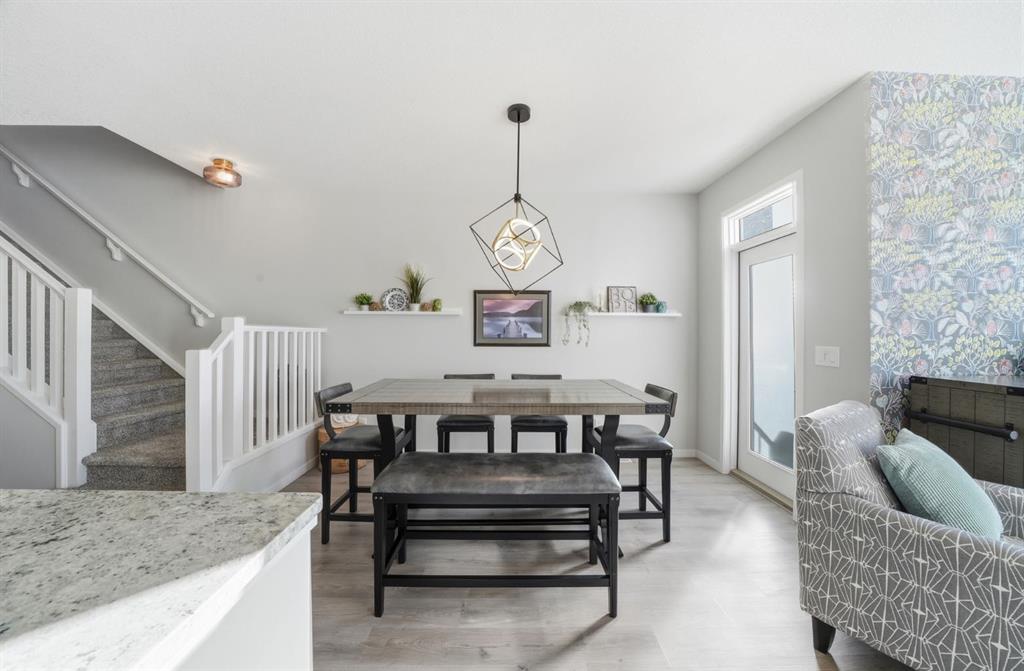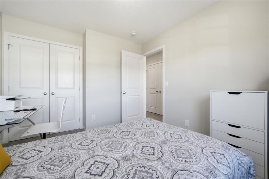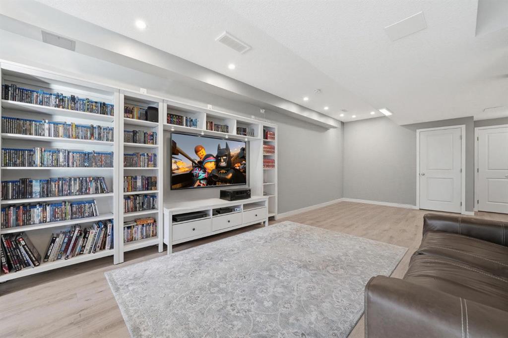 Built by Trico, this meticulously maintained two storey offers a rare combination of thoughtful design and exceptional storage throughout, creating a highly functional home from top to bottom. With a fully developed walkout basement and west facing backyard, this property is both practical and refined. The exterior showcases Hardie board siding and stonework, delivering strong curb appeal with lasting quality. Inside, laminate flooring extends through the main level and basement, complemented by upgraded lighting and window coverings throughout. The open concept main floor is anchored by a clean, modern white kitchen featuring granite countertops, subway tile backsplash, stainless steel appliances, range hood fan, a large island with seating, and extensive cabinetry along with a walk through pantry that enhances both storage and everyday convenience. The dining area opens onto an upgraded 12x12 patio, with a covered space below off the walkout level for additional outdoor living. The living room is bright and comfortable with west exposure and electric blinds, while the front attached single garage has been configured to maximize storage. A powder room completes the main floor. Upstairs, the primary suite offers a well organized walk in closet and a spacious five piece ensuite. A central bonus room provides separation and flexibility, with two additional bedrooms and a four piece bathroom located at the opposite end. Upper level laundry adds to the home’s efficiency. The fully developed walkout basement extends the living space with a three piece bathroom featuring in floor heating, along with enhanced soundproofing in both the ceiling and flooring, ideal for media, guests, or a quiet retreat or “Man Cave”. The west facing backyard is designed for low maintenance and year round enjoyment, complete with a covered patio, storage shed, and optional hot tub. Central air conditioning ensures comfort through the summer months. Well located in Cranston, close to pathways, parks, and everyday amenities.