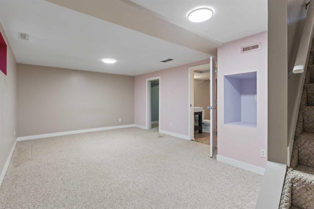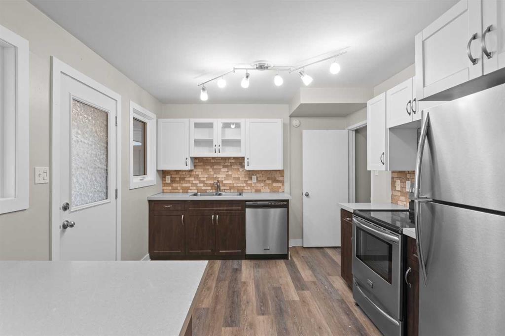 Welcome to Killarney Glen Court, an ideally located inner-city townhome community surrounded by mature trees and park-like green spaces. This updated three-level townhouse combines modern comfort with an effortless layout that feels bright, open, and connected. The main level features a spacious living room with a cozy gas fireplace, large picture window, and durable vinyl plank flooring that flows seamlessly into the dining area and renovated kitchen. The kitchen impresses with two-tone cabinetry, stainless steel appliances, a textured brick backsplash, and ample counter space for cooking and entertaining. Upstairs, you’ll find two generous bedrooms, including a king-sized primary with double closets, and a refreshed 4-piece bath with full tile tub surround and updated fixtures. The fully developed basement adds valuable flexibility with a large recreation room, guest bedroom or office, and a stylish 3-piece bathroom with fully-tiled shower — perfect for movie nights, hobbies, or visiting guests. Outside, your assigned parking spot is conveniently located just outside the back door. The well-managed complex offers excellent value with a low condo fee that covers snow removal, landscaping, and professional management. Set in one of Calgary’s most desirable neighbourhoods, you’re minutes to Marda Loop, 17th Ave, downtown, and the LRT, with easy access to schools, playgrounds, and bike paths. A fantastic opportunity for first-time buyers, investors, or anyone seeking the best of inner-city living in a quiet, established community.