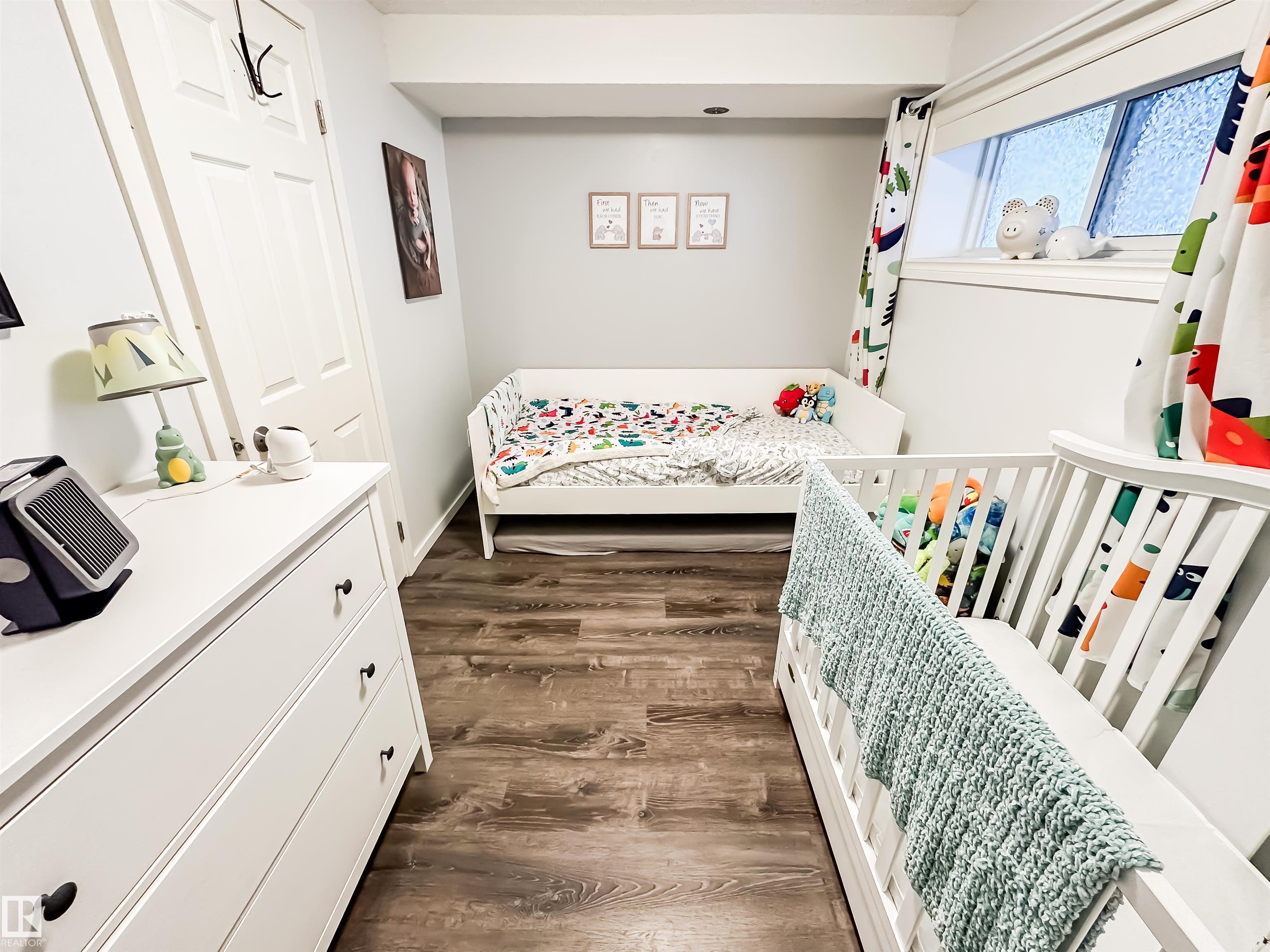 BRIGHT BI-LEVEL IN KINISKI GARDENS! This well-maintained 2-bedroom, 1.5-bath home offers fantastic value in a mature, convenient neighbourhood. The main floor is filled with natural light thanks to oversized updated windows that truly brighten the space. Enjoy vinyl plank flooring throughout, updated light fixtures and door hardware (2020), plus a refreshed kitchen with new countertops and backsplash (2020). The spacious living and dining areas flow to a large deck, perfect for summer evenings. Lower level, you’ll find two comfortable bedrooms, a full bath, and laundry. Updates include hot water tank (2023), shingles on garage (2023), vinyl fencing (2022), and basement vinyl plank flooring (2020). Outside, the beautifully kept garden is full of perennials, lilacs, roses, and day lilies. Complete with a single detached garage and walking distance to schools, transit, parks, and shopping. A smart alternative to condo living. Welcome home!