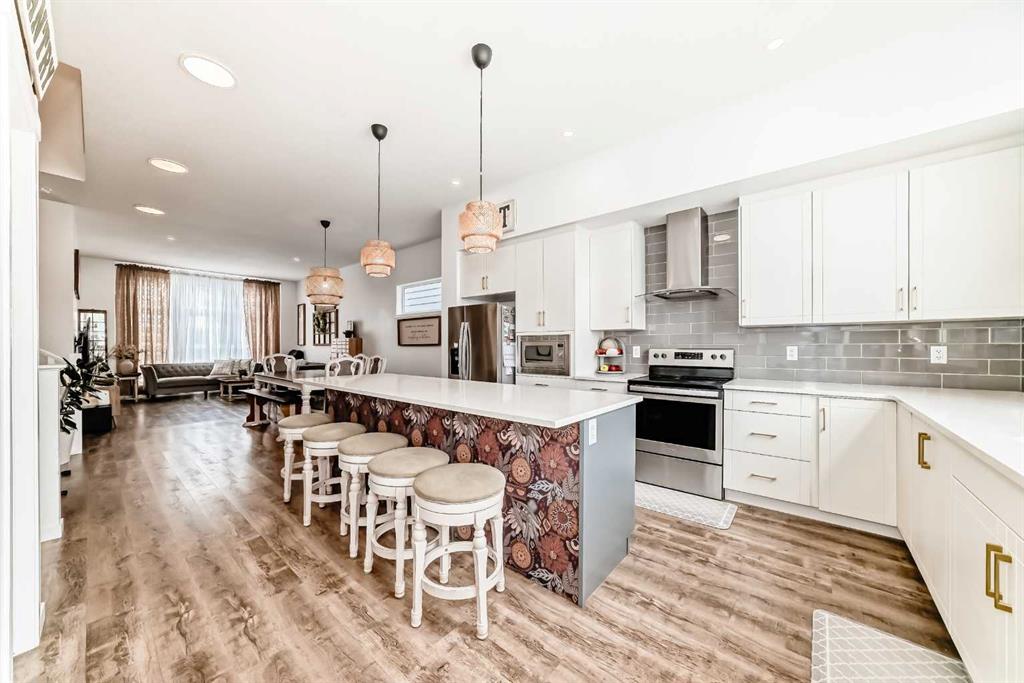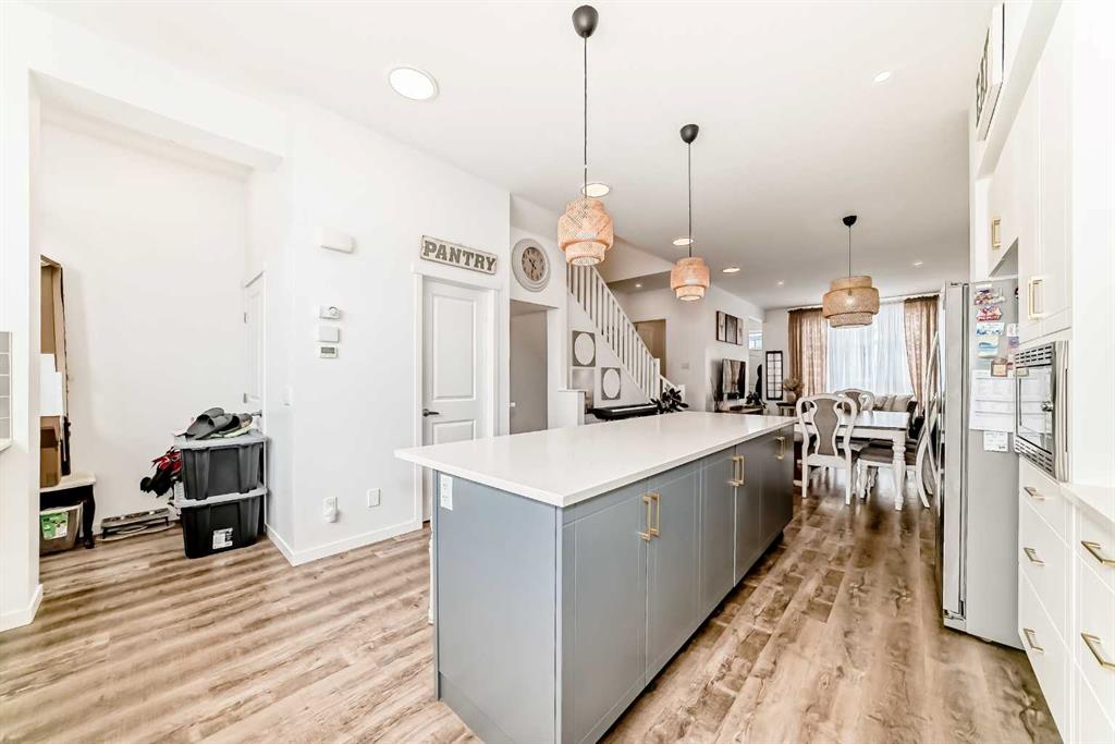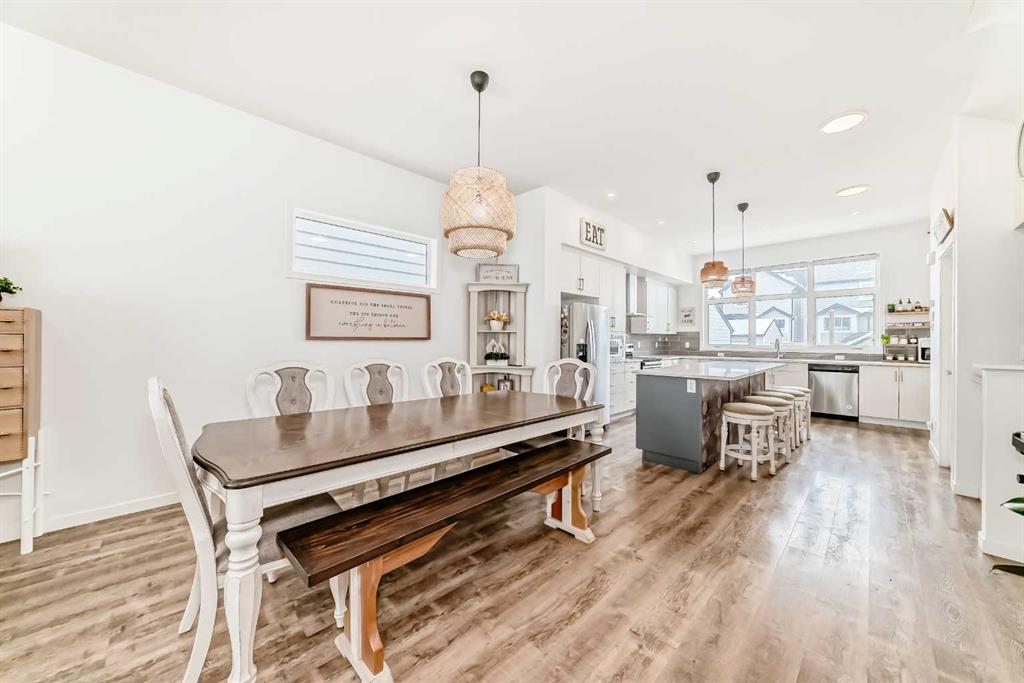 Welcome to 355 Masters Row SE, with a total living space of 2368.8 ft, a beautifully designed home in the sought-after lake community of Mahogany. This stylish and functional property offers an open-concept layout with modern finishes, as you step inside to a spacious foyer you are greeted with by a bright 10 foot ceiling living, dining flooded with natural lights coming from two large windows a spacious kitchen featuring stainless steel appliances, quarts counter tops and a large island great for family gatherings, a full height crisp white cabinetry and a good size pantry. A stylish powder room and a functional mudroom finishes the main floor. Upstairs you’ll find generously sized primary bedroom with good size walk in closet and a full bath with double vanity. Two generous bedrooms and a shared full bath are conveniently next to each other. The basement offers a unique feature as you come down the stairs you will find a mini living room dining and sink with counter tops. It also comes with its own refrigerator and washer dryer. It also offers a great size fourth bedroom and a full bathroom. Enjoy outdoor living with a fully fenced and low maintenance back yard. There are also two gravel parking spaces outside the backyard. Easy access to parks, pathways, schools, shopping, and exclusive lake amenities. Plus, a convenient bus stop is just steps away. making daily commuting a breeze. A perfect blend of comfort, convenience, and community living.