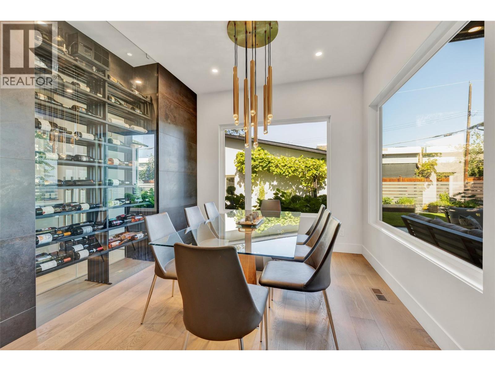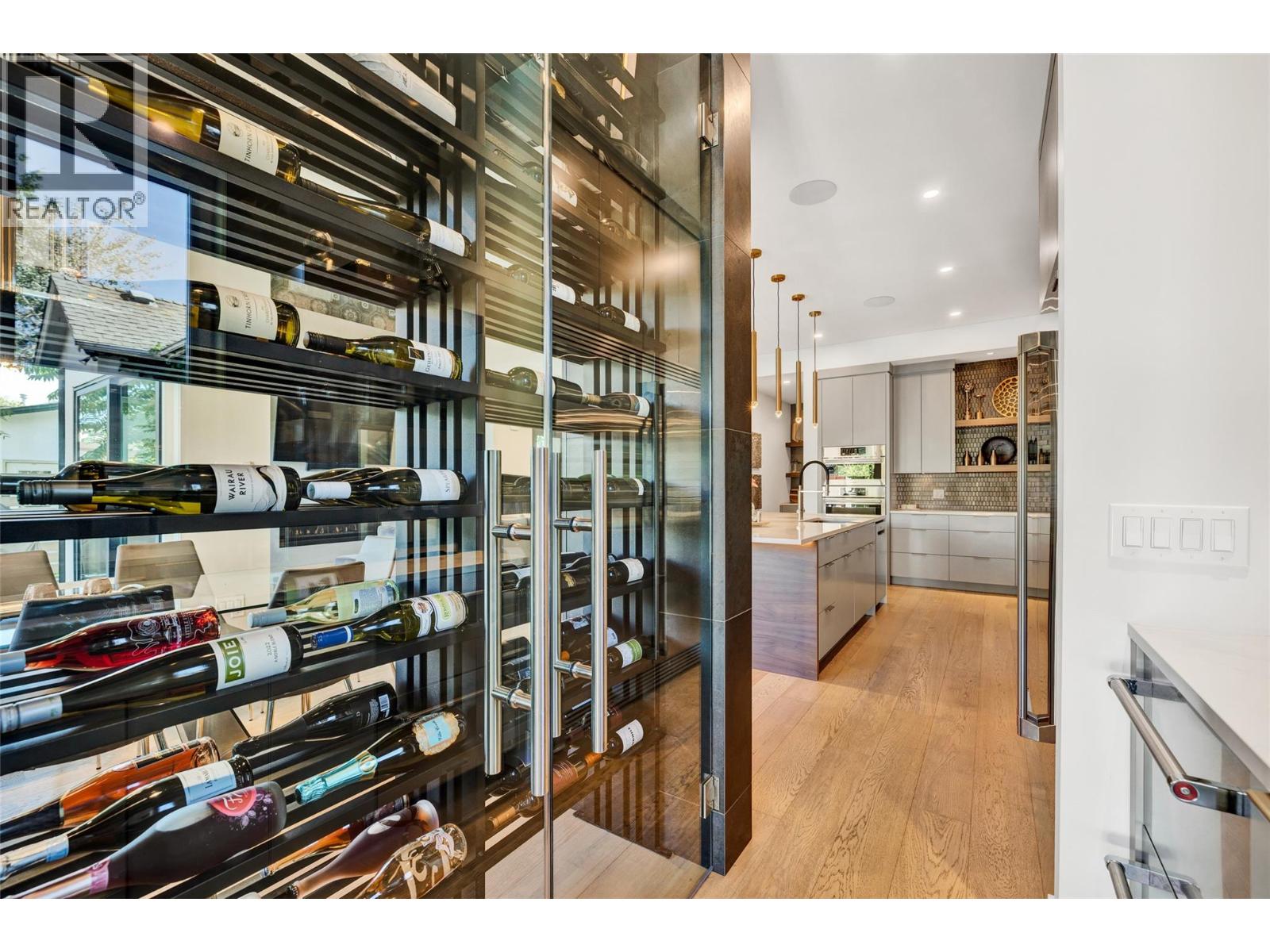 Located in one of Kelowna’s most coveted enclaves, this custom-built residence offers an inspiring blend of refined design and effortless Okanagan living. Just steps from Strathcona Park, the beach, and the Abbott Bike Corridor, it delivers an unparalleled lifestyle where morning shoreline walks and sunset rides become part of everyday life. Inside, a light-filled great room with soaring 16-foot ceilings creates an airy, modern sanctuary. Premium finishes and craftsmanship define every space, while a chef-inspired kitchen showcases high-end appliances, a butler’s kitchen, and a temperature-controlled 218-bottle wine cellar—perfect for entertaining with ease and elegance. The primary suite is a serene retreat, featuring a generous walk-in closet and private laundry for ultimate convenience. Three-zone climate control and on-demand hot water ensure comfort and efficiency year-round. Outside, the low-maintenance, fully fenced yard offers privacy without compromise, enhanced by underground irrigation and raised garden beds. A rare offering in an iconic location, this home is designed for those who value quality, comfort, and a truly elevated lifestyle. Detached 2 car garage has a Telsa charger.