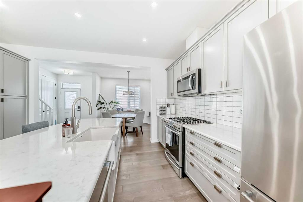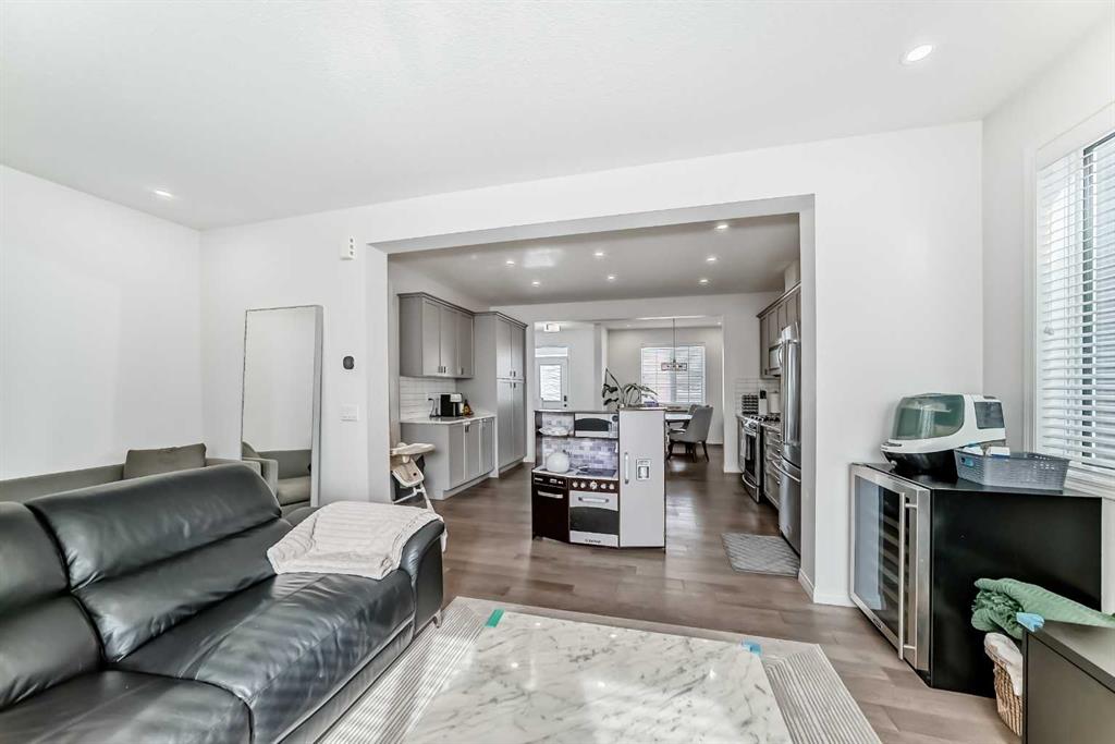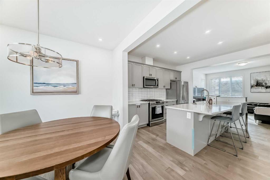 Welcome to this beautifully maintained 3-bedroom, 2.5-bathroom duplex with NO CONDO FEES at carrington community, offering the perfect blend of comfort, style, and convenience. The bright, open-concept main floor features 9-foot ceilings and durable luxury vinyl plank flooring, creating a modern and inviting living space. Large windows fill the living room with natural light, while the well-appointed kitchen impresses with stainless steel appliances, sleek cabinetry, ample counter space, and a large central island—ideal for everyday living and entertaining. The dining area flows seamlessly from the kitchen, and a convenient 2-piece powder room completes the main level. Upstairs, the spacious primary suite offers a walk-in closet and a private 5-piece ensuite with dual sinks, a soaker tub, and separate shower. Two additional bedrooms, a 4-piece bathroom with dual sinks, and upper-level laundry provide practical family living. The unfinished basement offers excellent potential for future development to suit your needs. Located in a vibrant community close to parks, pathways, shopping, and amenities, with quick access to Stoney Trail and just 15 minutes from the airport, this home offers outstanding value and convenience.