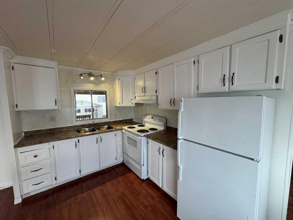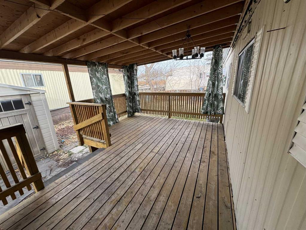 Welcome home! This beautifully updated 3 bedroom, 1 bathroom home is move-in ready and ideal for a growing family, especially those with kids and pets. You’ll love the large fenced backyard, offering plenty of space for children to play safely and pets to run freely. The newly built 170 sq. ft. covered deck extends your living space outdoors and is perfect for entertaining, BBQs, or simply relaxing year round. You can even enclose the deck with poly in the winter, making it a cozy winter retreat. A spacious shed just off the deck provides convenient storage for outdoor furniture and garden tools, while the large 160 sq ft front porch is a great space to relax outside with your neighbours. The mudroom addition at the front (not included in the square footage) gives you extra room for coats, boots, and everyday gear. Inside, you’ll find a bright, welcoming layout with three full bedrooms; a rare find in this style of home. Recent updates include: New furnace (2024), New hot water tank (2025), New heat tape (2025), Fresh paint throughout, New laminate flooring in all bedrooms, New window screens, a refreshed kitchen featuring a new backsplash, painted white cabinetry, and an eat-up bar with added storage. Located in the friendly community of Calgary Village, residents enjoy access to parks and green space along with fantastic amenities, including a Clubhouse, Fitness Room, Games Room, Kitchen, and Outdoor Gathering Space with BBQs and picnic tables. If you like being outdoors, you will enjoy Elliston Park just across 17th Ave., where you can enjoy the beautiful walking paths around the pond and an off leash area for your furry friends. You’ll appreciate the convenience of living just off International Avenue, known for it's vibrant mix of restaurants and shops, plus easy access to Deerfoot Trail, Stoney Trail, and all the major retailers at East Hills Shopping Centre, including Costco, Walmart, and Cineplex. Don’t miss your chance to make this charming and affordable home your own.