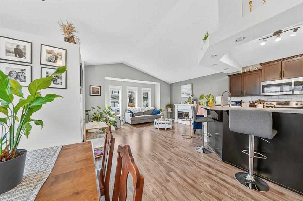 Welcome to Copperwood, one of Lethbridge’s most sought-after family-friendly communities. This well-maintained 4-level split home offers 3 bedrooms, 3 bathrooms, central air conditioning, underground sprinklers, and a functional layout designed for modern living. The main floor features a bright open-concept design with a spacious living room, dining area, and kitchen, all enhanced by vaulted ceilings and large windows that bring in natural light. The kitchen is equipped with stainless steel appliances, a generous peninsula with raised bar seating, and a stylish ceiling detail that adds character to the space. Durable laminate flooring runs throughout the main level, and convenient side access leads directly to the backyard. Upstairs, the primary bedroom includes a walk-in closet and a private ensuite with a large shower, extended vanity, ample storage, and tile flooring. This level also features a second bedroom, a full bathroom, and the convenience of upper-floor laundry. The third level offers a comfortable family room, a third bedroom, and another full bathroom— ideal for guests, teenagers, or a flexible living space. The basement is partially finished with luxury vinyl plank flooring and provides excellent storage, with potential to customize as a home gym, office, playroom, or additional living area. Outside, enjoy a low-maintenance yard complete with underground sprinklers, decorative rock landscaping, and a private side patio—perfect for relaxing or entertaining. A large rear parking pad provides space for two vehicles and the opportunity for a double car garage. Located close to parks, playgrounds, schools, shopping, and Cavendish Farms Centre, this move-in ready home offers the perfect balance of comfort, functionality, and location.