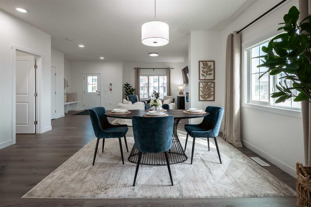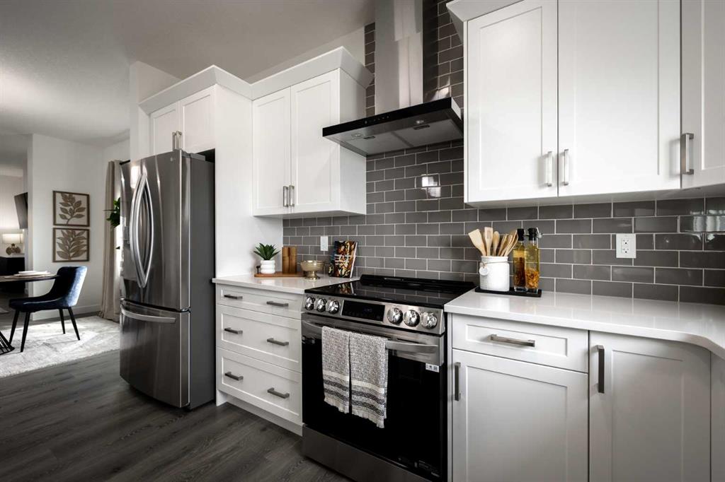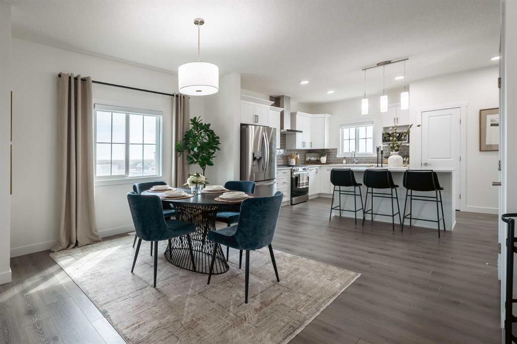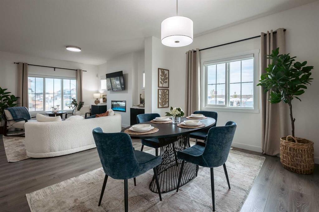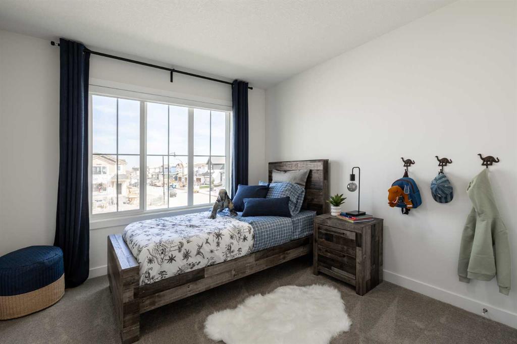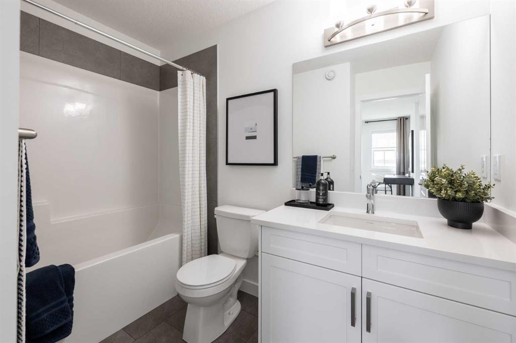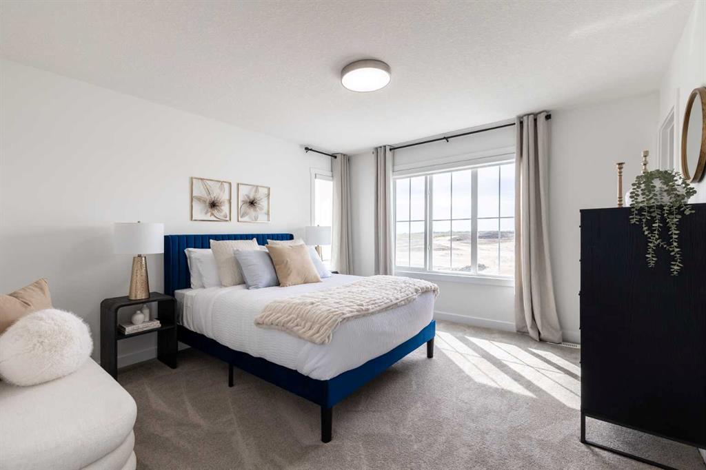 MODERN DOUGLAS WITH BONUS ROOM, SIDE ENTRY & BELMONT CONVENIENCE! Welcome to Belmont, a growing SW Calgary community known for its family-friendly vibe, scenic walking paths, nearby shopping, and easy access to major routes, perfect for balancing lifestyle and convenience. This Douglas-Z model zero lot line home features over 1800 sqft of a bright open-concept main floor with 9’ ceilings and beautiful French-imported laminate flooring, creating a warm and cohesive living space. The modern kitchen is complete with quartz countertops, ample cabinetry, and a seamless connection to the dining and living areas—ideal for both daily living and entertaining. Durable vinyl tile flooring in all wet areas adds practicality where it matters most. Upstairs, you’ll find three spacious bedrooms, a versatile bonus room perfect for family time or a home office, and the convenience of second-floor laundry. The layout is designed to grow with you, offering both comfort and flexibility for busy households. Additional highlights include a separate side entrance for future potential and a rear parking pad for convenient off-street parking. A well-balanced home that blends modern finishes, smart design, and a welcoming community, this is Belmont living at its best. PICTURES ARE OF SHOW HOME; ACTUAL HOME, FIXTURES, FINISHES, ETC. MAY VARY AND ARE SUBJECT TO AVAILABILITY/CHANGE WITHOUT NOTICE