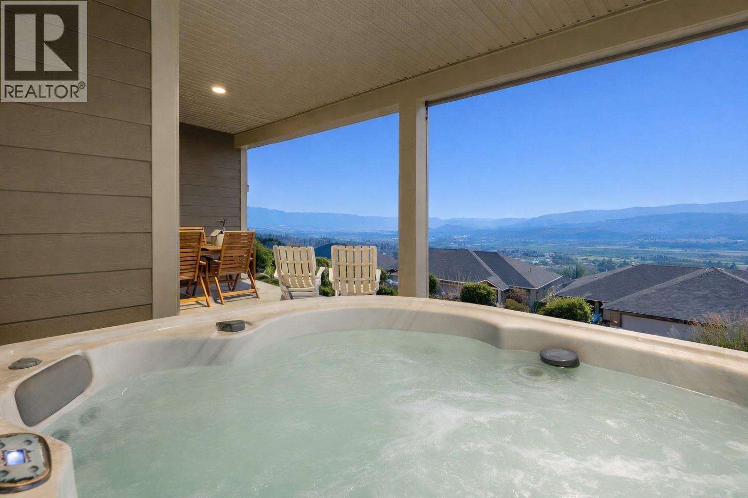 Located in the prestigious gated community of Sunset Ranch, this beautifully maintained walkout rancher offers sweeping views of Lake Okanagan, Beaver Lake, the valley, surrounding mountains and the fairways of Sunset Ranch Golf Course. Designed for effortless main floor living, the home features a bright open concept layout with vaulted ceilings, a spacious primary suite on the main level and seamless access to a covered deck ideal for morning coffee or evening sunsets. The chef-inspired kitchen includes an induction cooktop, quality appliances and generous workspace for entertaining. Unlike many homes in the community, this floorplan offers an oversized lower-level recreation room, creating exceptional space for entertaining, hobbies or visiting guests. The walkout level also includes a guest bedroom, full bathroom and access to a second covered outdoor space complete with hot tub. Thoughtful upgrades include a dedicated EV charging circuit with breaker in the garage panel, exterior sunscreen roller shades on the deck, synchronized bathroom exhaust fans, water softener and central air. Located on a quiet cul-de-sac with low monthly strata fees and an attached double garage, this home offers comfort, privacy and low maintenance living just minutes from Kelowna International Airport and UBCO.