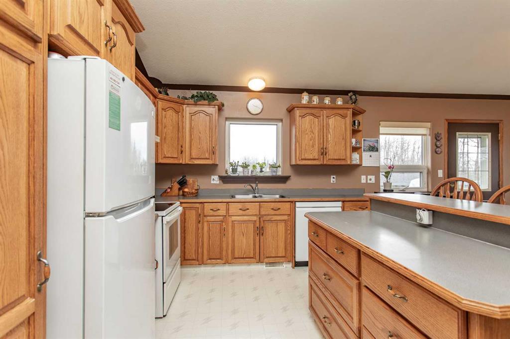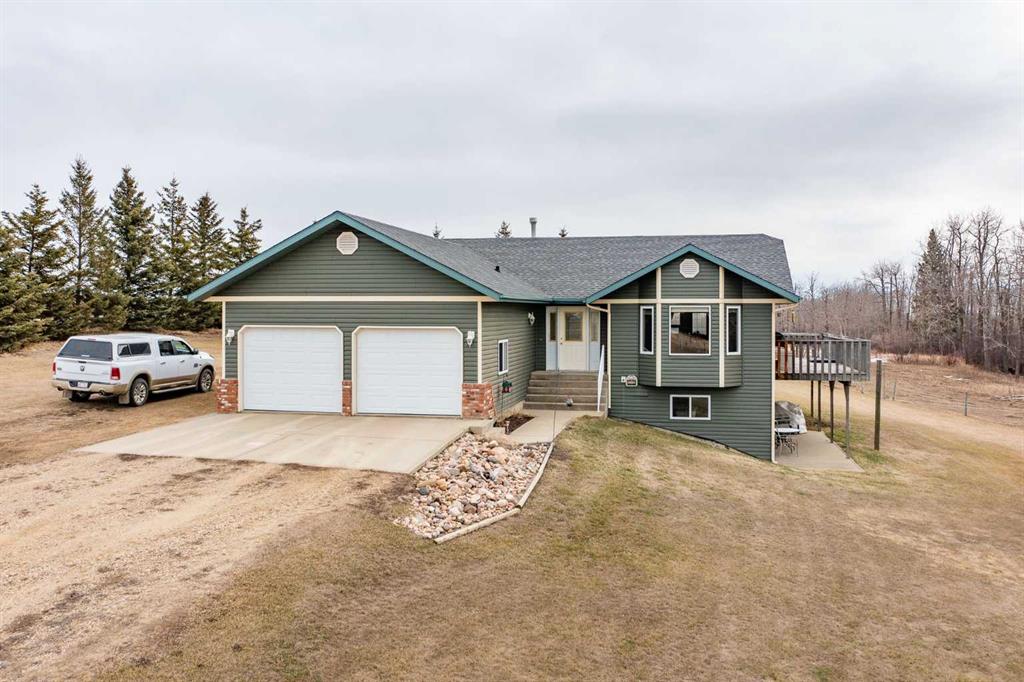 Acreage living at its finest! This stunning bungalow with a fully developed walkout basement is perfectly situated on 20 acres zoned AG, just 15 minutes from Lacombe—offering the ideal blend of privacy, space, and convenience. Custom built and thoughtfully designed, the home features an open-concept kitchen, dining, and living area with expansive windows that capture breathtaking views to the east, south, and west. The main floor offers 1,284 sq ft of comfortable living space, while the walkout basement adds an additional 1,180 sq ft, complete with three additional bedrooms (5 total), a 3-piece bathroom, large family room, and utility/laundry area—perfect for growing families or hosting guests. Step outside and enjoy peaceful country living from the east-facing deck, ideal for morning coffee, while the west-facing views from the living room provide unforgettable sunset backdrops. The property is well-equipped for hobbyists, farmers, or entrepreneurs with a 40’ x 60’ shop, offering ample space for equipment, storage, or workspace. Whether you’re looking to raise a family, escape the city, or downsize from a larger farm, this versatile and beautifully located acreage checks all the boxes. Move in and enjoy your summer on the acreage you’ve been waiting for!