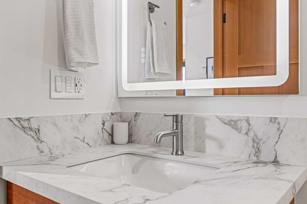 Welcome to a thoughtfully renovated mountain townhome in one of Canmore’s most desirable neighbourhoods. This 3-bedroom, 3.5-bath home combines clean mountain-modern style with comfort and functionality, all tucked into a quiet setting you’ll love coming home to. The condition is truly exceptional, with high-end finishes and quality appliances throughout, reflecting the care and attention that’s gone into every update. The main living level features a bright, open layout filled with natural light. Hardwood floors, exposed wood beams, and a striking Rundle stone fireplace create a warm and inviting space, while the adjacent deck offers sunny exposure and beautiful mountain views. The kitchen is equally impressive and designed with entertaining in mind, featuring Italian porcelain countertops and backsplash, premium stainless steel appliances, a Fisher & Paykel induction range, Double Dish Drawer dishwasher, a custom integrated hood fan, and modern floating shelves with LED lighting. Upstairs, you’ll find two spacious primary-style bedrooms, each with its own ensuite. The larger primary enjoys stunning views of the Three Sisters and an upgraded, spa-inspired bathroom. Laundry is conveniently located on this level, complete with built-in storage for linens and supplies. The entry level offers a versatile third bedroom that works perfectly as a home office or guest space, complete with a cleverly designed Italian Murphy bed, along with an additional full bathroom. All bathrooms throughout the home have been updated with Italian porcelain countertops, new sinks, and LED mirrors. Motorized Hunter Douglas blinds have also been added in the main living area, kitchen, and primary bedroom for added comfort and privacy. With river pathways just a short walk in one direction and Main Street only blocks away in the other, this home offers the ideal balance of peaceful living and easy access to everything Canmore has to offer. A perfect lock-and-leave mountain retreat.