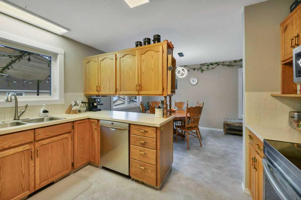 Welcome to this well-maintained 4-bedroom, 3-bathroom bi-level located in the sought-after Hearthstone subdivision in Lacombe. Thoughtful updates throughout include new kitchen appliances, new lighting in the kitchen, dining room, upstairs hallway and downstairs family room, new vinyl windows and window coverings on the main floor, updated flooring, trim, and paint, a 2-year-old hot water tank, and 30-year shingles installed just 5 years ago, offering comfort and peace of mind. The home features bright, inviting living spaces designed for everyday living and entertaining. Step outside to enjoy a cozy front patio shaded by a mature tree, a rear deck perfect for BBQs and relaxation, along with fruit trees, garden beds, and a storage shed for the avid gardener. A double attached garage completes the package, all conveniently located close to schools, shopping, and playgrounds, making this a move-in-ready home ideal for families and lifestyle-focused buyers.